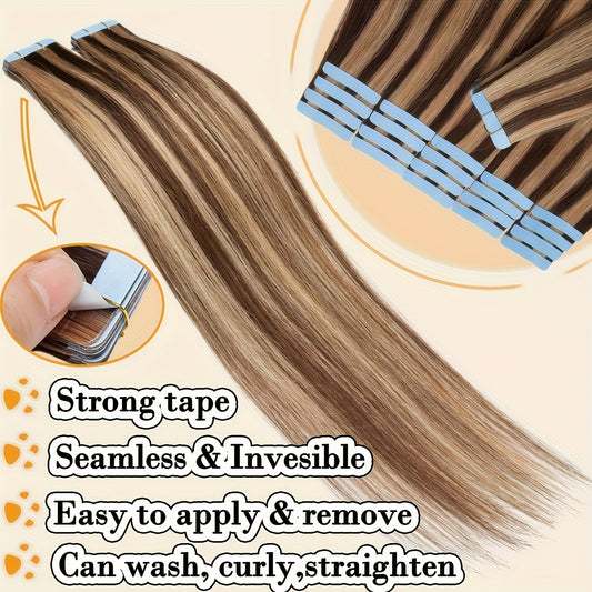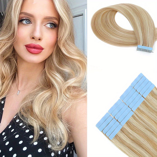 Tape ins use thin adhesive tabs attached to small wefts of human hair. The common install is a sandwich: one tab above and one tab below a clean, evenly combed slice of your hair so the adhesive bonds to itself with your hair inside. The result is flat, wide coverage that distributes weight gently and lies close to the head. Because a tab spans more width than a bead or strand, you can achieve coverage with fewer units and a very low profile under the canopy when mapped correctly.