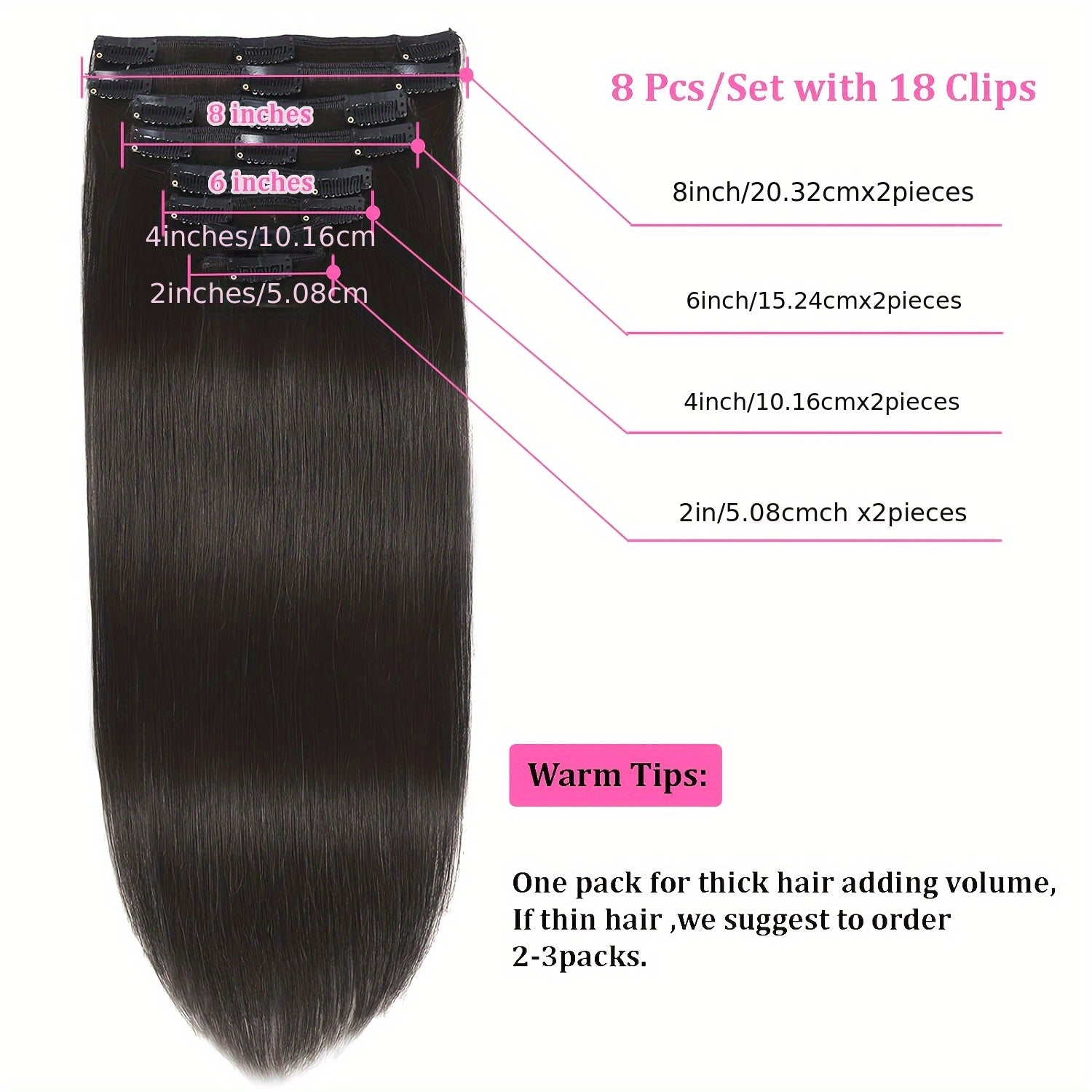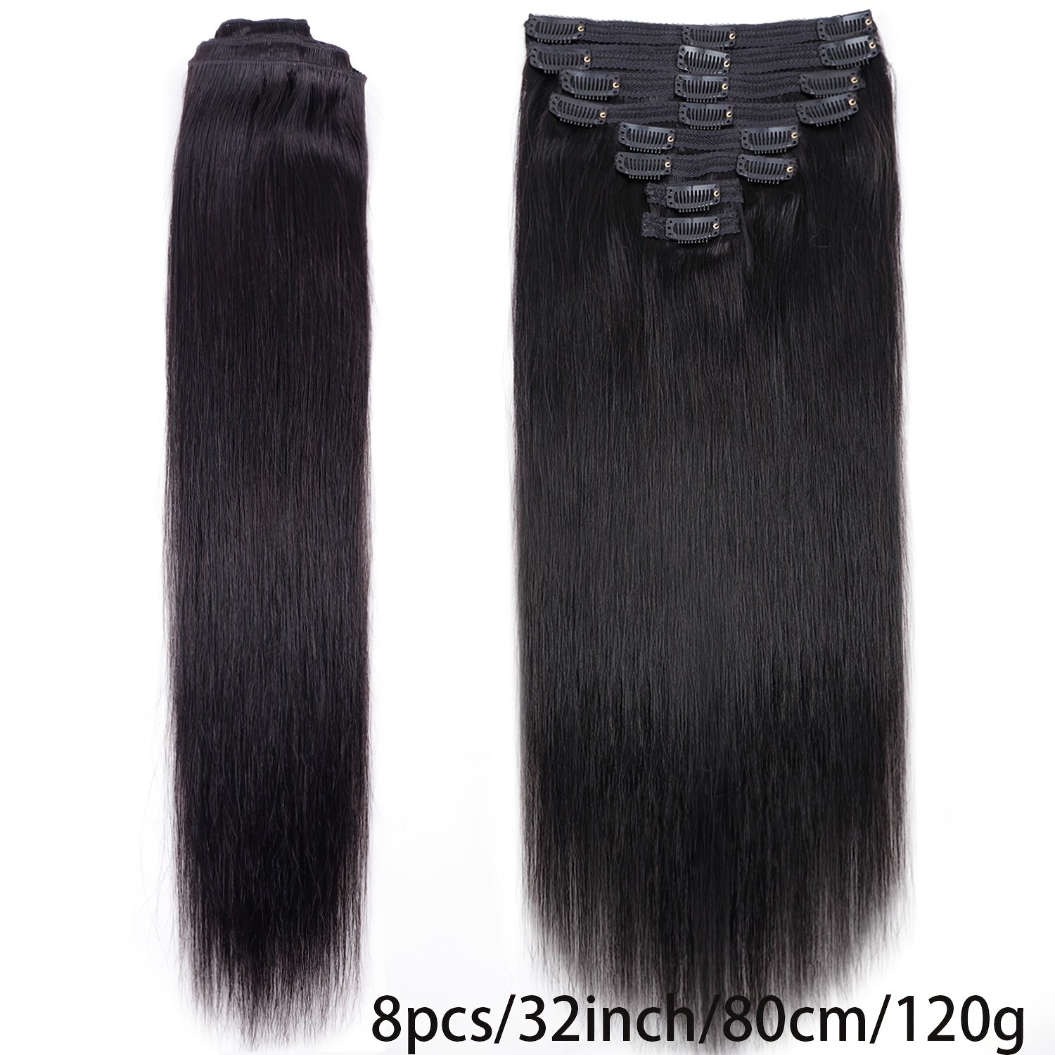 8 Pieces Straight Real Human Hair Clip In Hair Extensions | Remy Brazilian Black Human Hair | Double Wefted Clip In Hair Extension 7610609041477 182.76