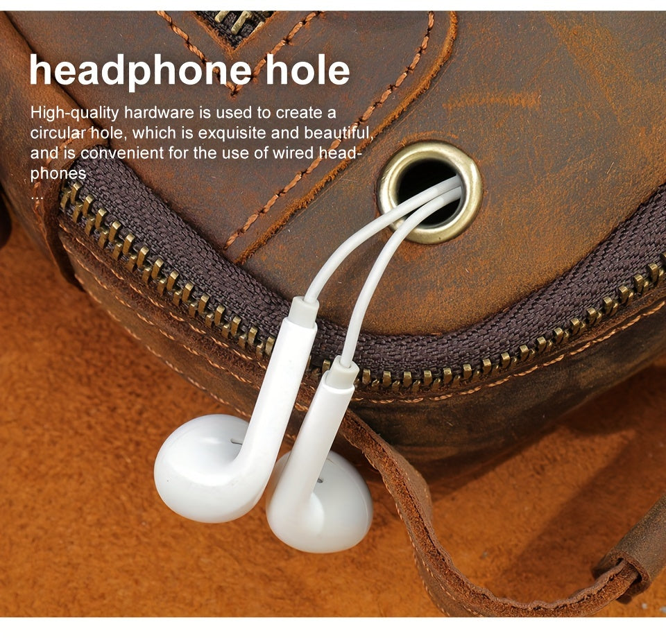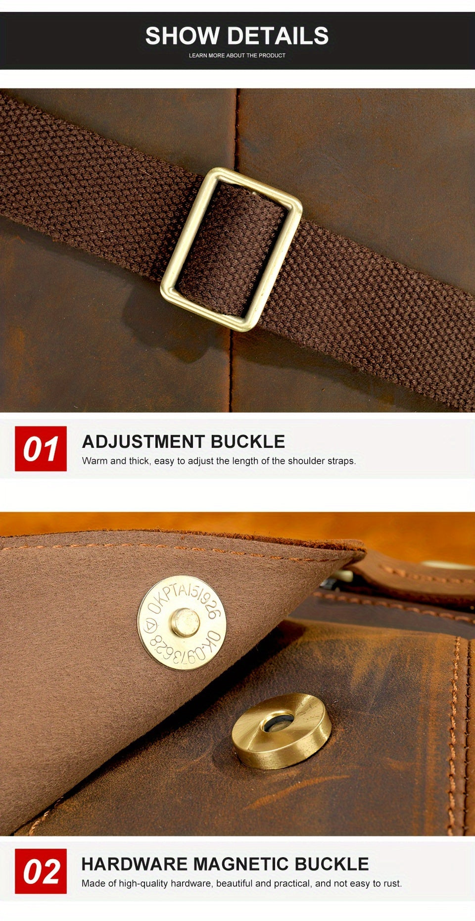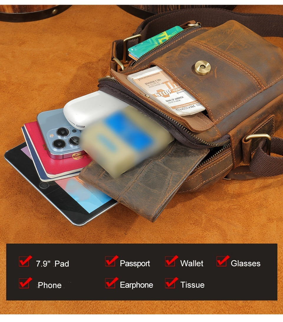 Crazy Horse Leather Shoulder Bag For Men, Fashionable Sling Bag For 7.9-in Tablet, Retro Crossbody Bag For Hanging Out & Daily Commute