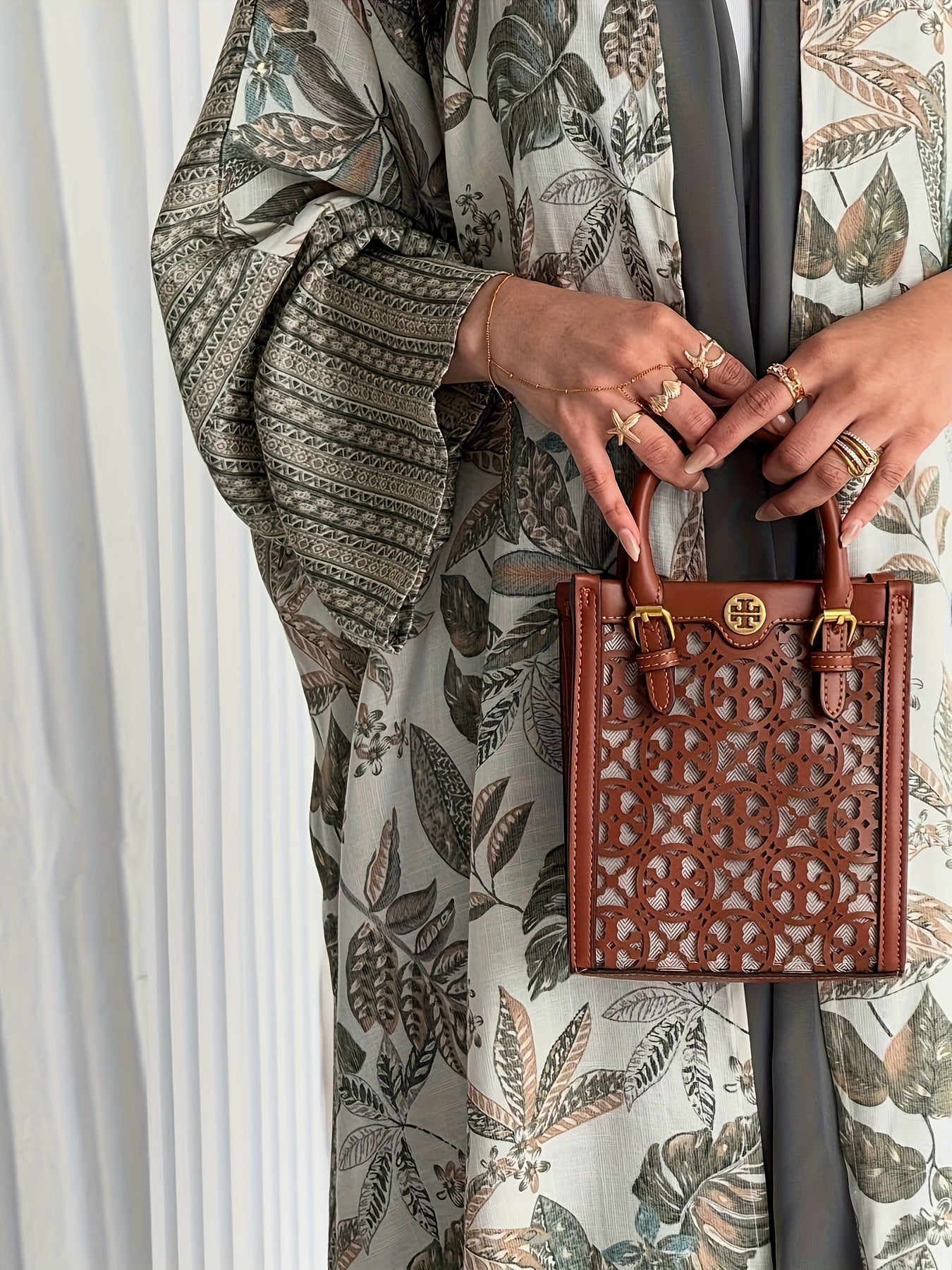 The robe is machine washable, making it easy to care for without compromising its luxurious look. We recommend washing it on a gentle cycle with like colors and air drying to maintain its structure and soft texture. Avoid direct ironing to prevent fabric damage, and if needed, use a steamer to remove wrinkles and preserve the flowing design.