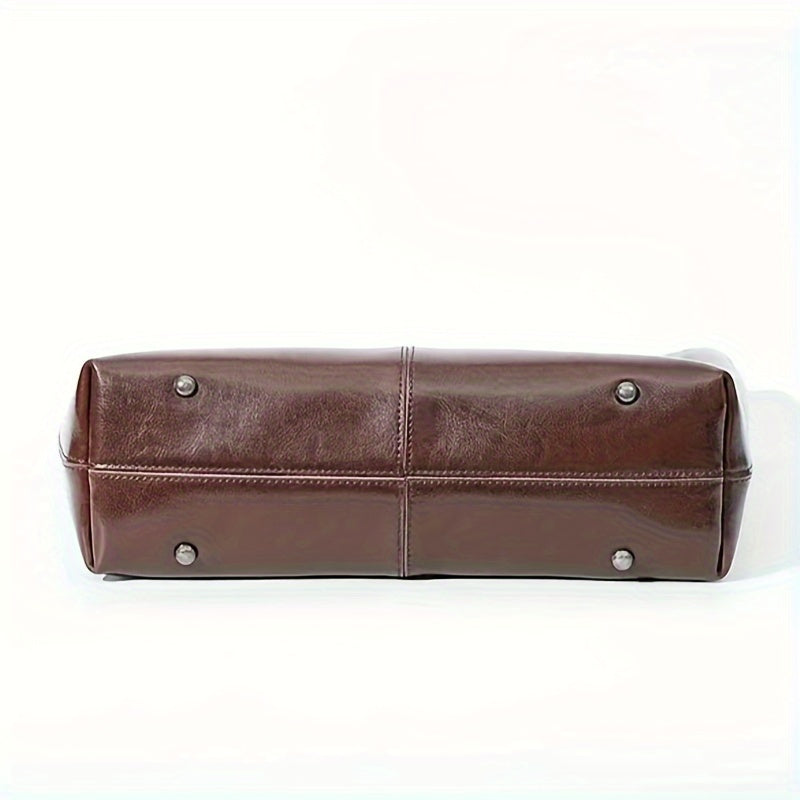 Genuine Leather Vintage Slit Women's Tote Bag - Large Capacity Single Shoulder Handbag with Top Handle & Zipper Closure, Coffee Brown Peacock Blue Light Brown Wine Red Black, Daily Commuting & Outdoor Activities