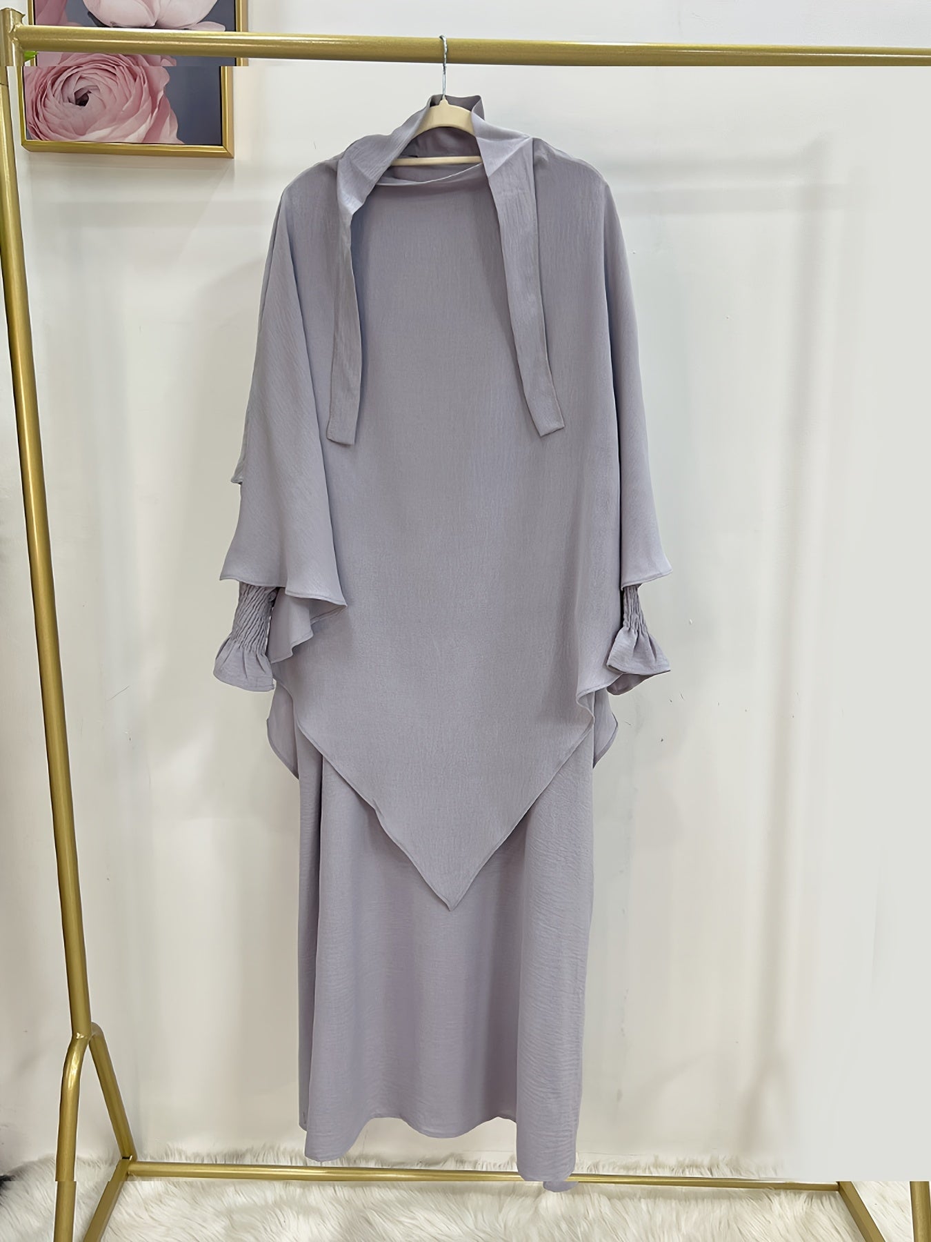 In an age of fast fashion, where trends come and go, the Khimar + Abaya 2pcs Set remains a constant—a symbol of continuity and refinement. While the fashion industry may rush to reinvent itself with each season, this abaya set resists such transience. Instead, it becomes a reminder that true style is ageless, defined not by the fleeting trends of the moment but by timeless design principles and enduring quality. The durability of the fabric, the careful craftsmanship, and the meticulous attention to detail all contribute to a piece that doesn’t simply disappear with the ebb and flow of trends. Rather, it stands as a testament to the value of slowing down and investing in items that are built to last—not just in terms of longevity, but in terms of legacy.