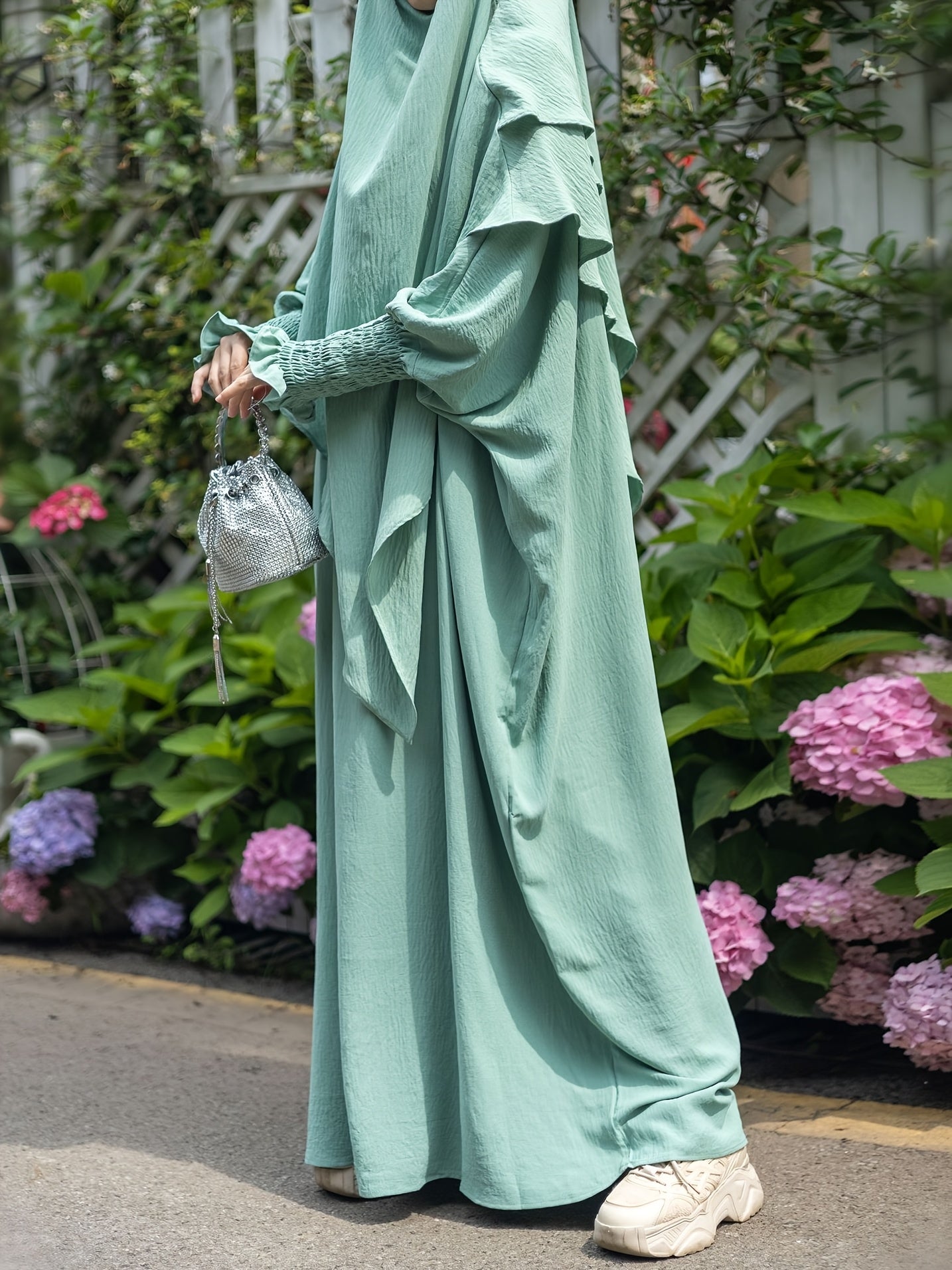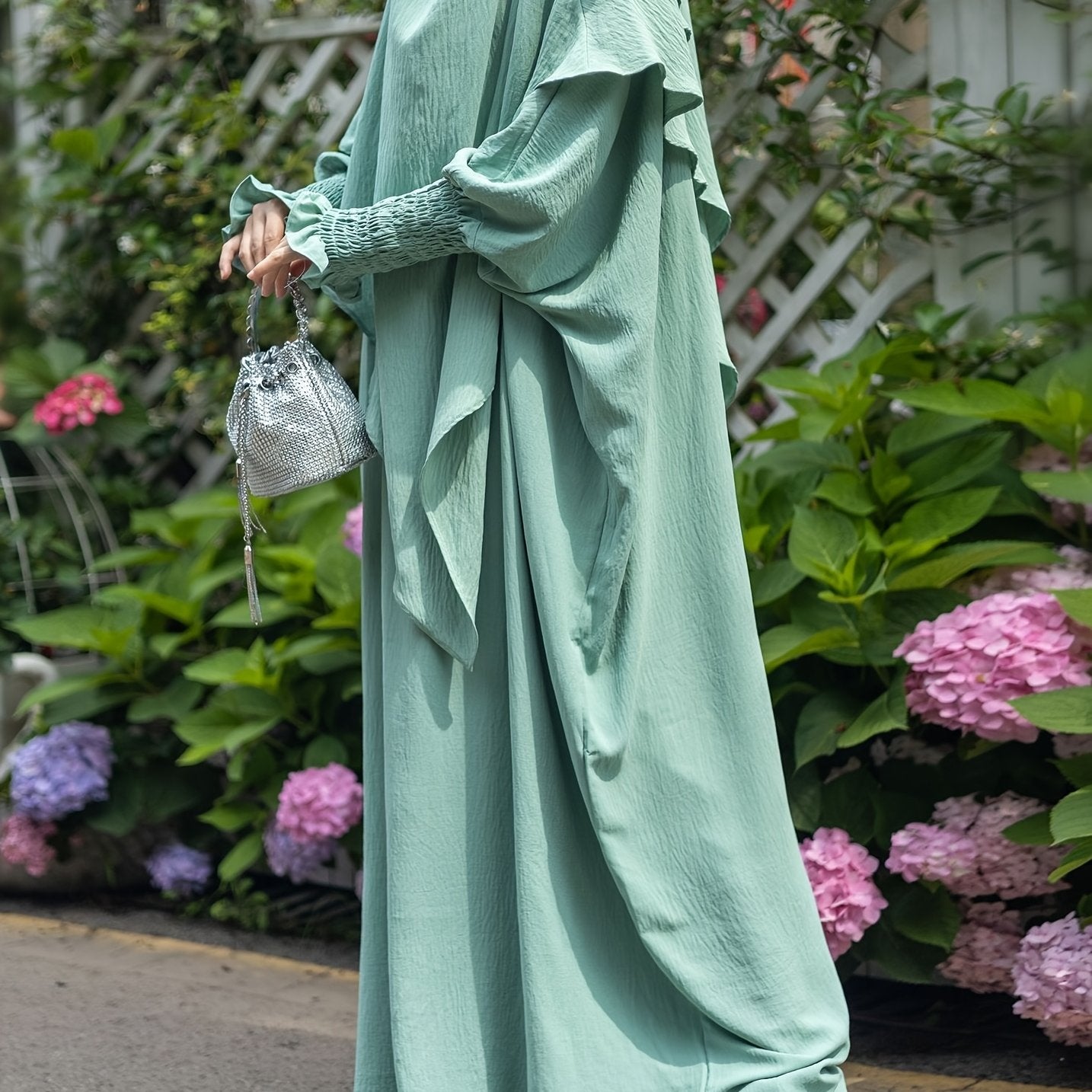 This cultural resonance also challenges the simplistic notion that modest wear is restrictive. On the contrary, the abaya represents freedom—the freedom to align clothing with values, the freedom to create presence without exposure, the freedom to move through sacred and secular spaces with confidence. The Khimar + Abaya 2pcs Set honors this deeper truth, demonstrating how a garment can be both ancient in spirit and current in design.