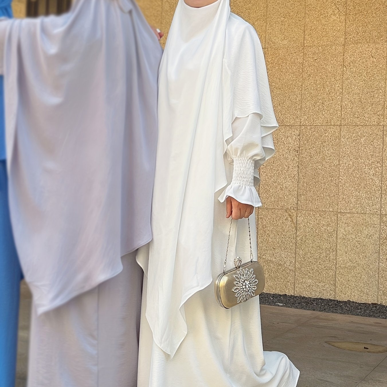 Value, in this context, must be considered in its full depth. Yes, there is the financial worth of investing in a garment that resists rapid deterioration, but there is also the emotional value that transcends price. The Khimar + Abaya 2pcs Set doesn’t merely serve as clothing—it evolves into a living memory, a physical manifestation of the experiences and milestones it accompanies. Each time the abaya is worn, it collects stories—of quiet moments in prayer, of sacred travel, of family gatherings, and of personal reflection. Over time, these moments become woven into the fabric, much like the threads that create the garment itself. The set transforms from something merely functional into something deeply personal, imbued with significance that no new garment can replicate.