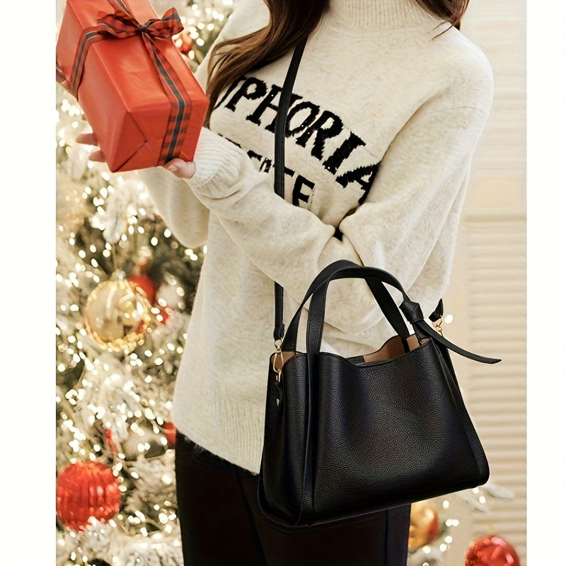 Real Leather Women's Handbag, Medium-sized Bag, First Layer Cowhide Large Capacity Bucket Bag, High-quality Shoulder Bag, Fashionable Ladies' Cross Body Bag, Multi-component Pocket, Magnetic Zipper, Double Opening And Closing
