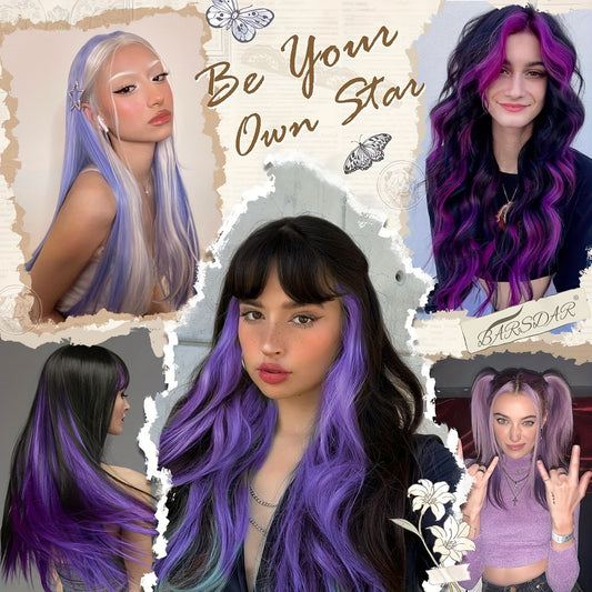 [Mixed Color Hair Extensions] 24pcs Mixed Color Clip-In Hair Extensions Set | 55.88cm Straight Synthetic Hairpieces for Women, High Temperature Fiber, Fashionable for Parties, Halloween & Cosplay