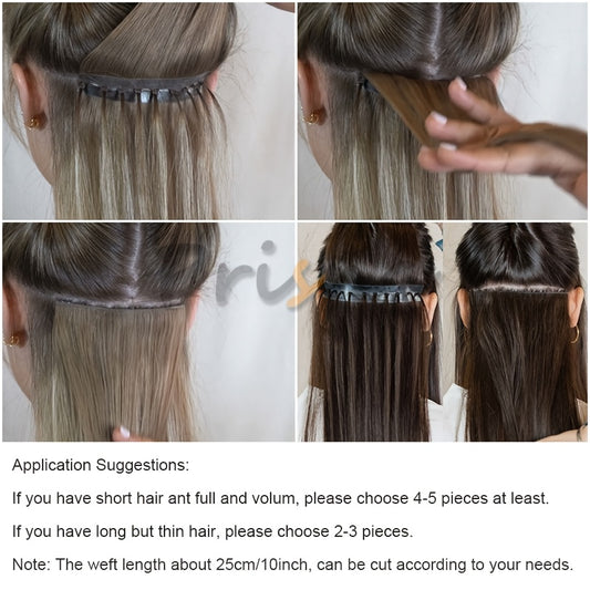 1pc Invisible Hole Human Hair Weft Extensions - Straight Blonde Double Side Weft for Women, 12" - 40g, 16" - 40g, 20" - 50g, 24" - 50g, Natural Hair, Hair Filling|Straight Hair Extensions|Invisible Hole Weft, Hair Wefts