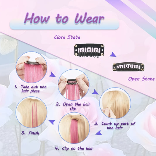 12pcs Rainbow Clip-In Hair Extensions - Vibrant Pastel Colors (Pink, Green, Yellow, Purple, Orange, Red, Brown, ) - Heat-Resistant Synthetic, Easy Application & Damage-Free Styling - Perfect for Parties, Photo Shoots, Festiva