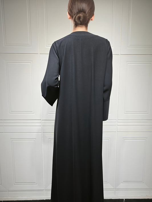 Minimalist Statement Abayas: Monochrome designs elevated with structured cuts and minimal detailing.