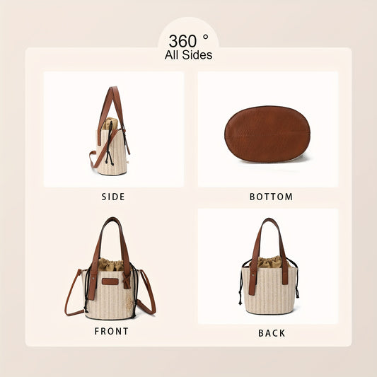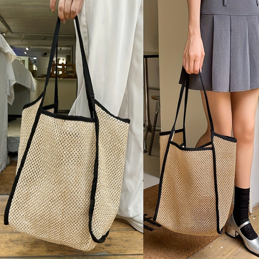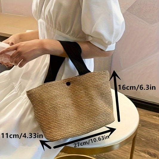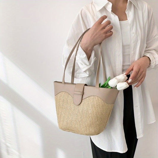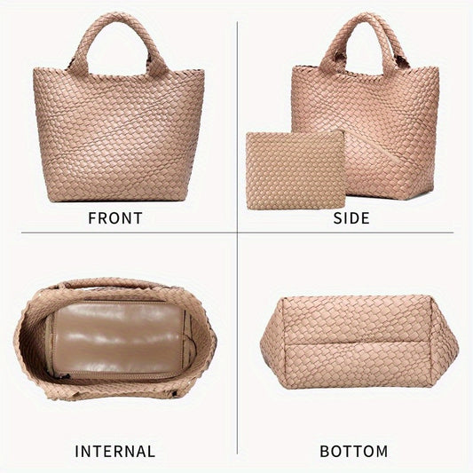 For Daywear: Neutral-toned woven totes elevate office attire, offering both practicality and understated luxury.
