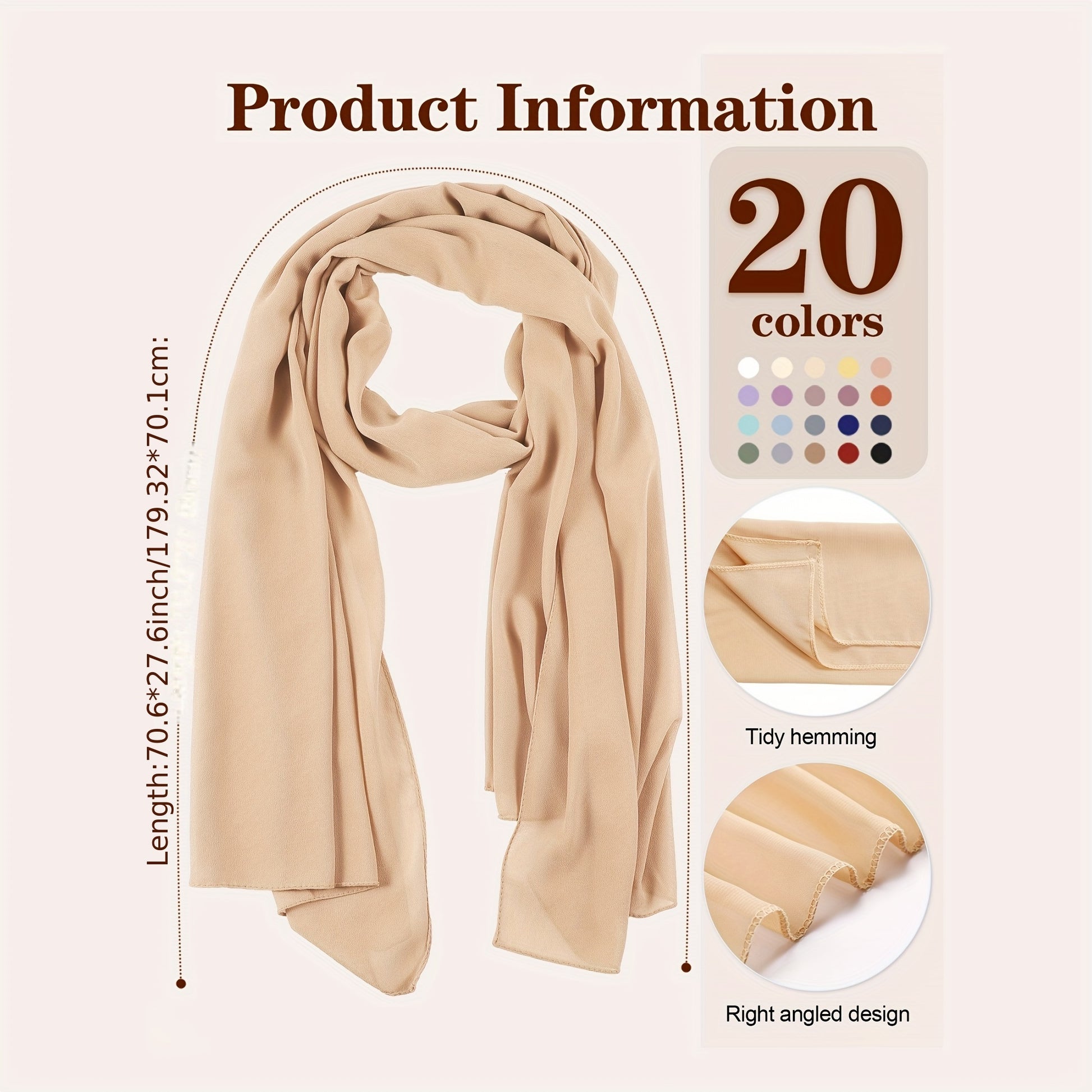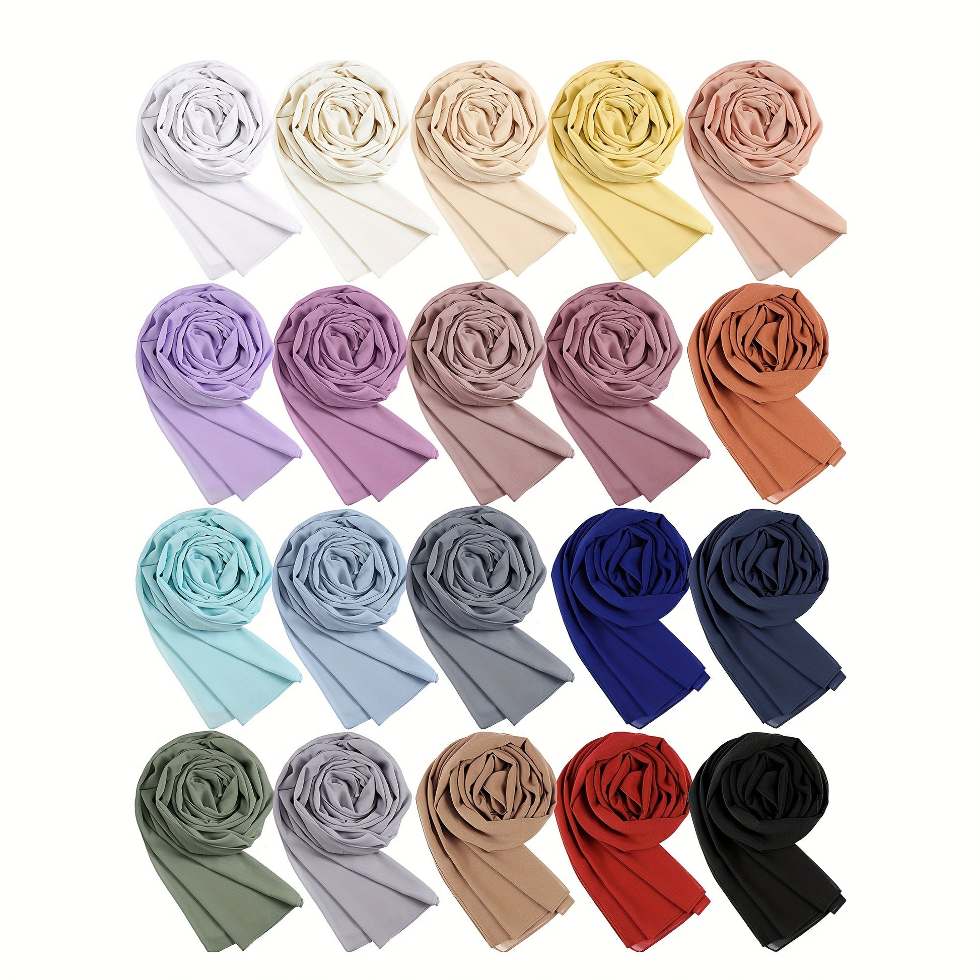 20 Pack Chiffon Hijab Head Scarves For Women | Soft Hijab Long Scarf Wrap For Muslim Women Lightweight, 20 Colors