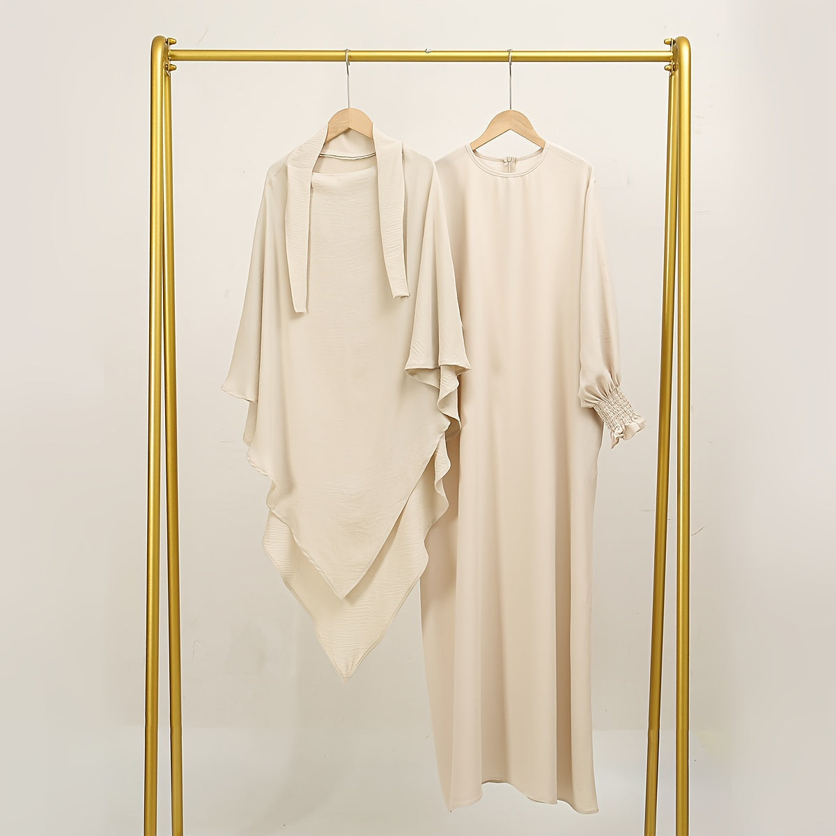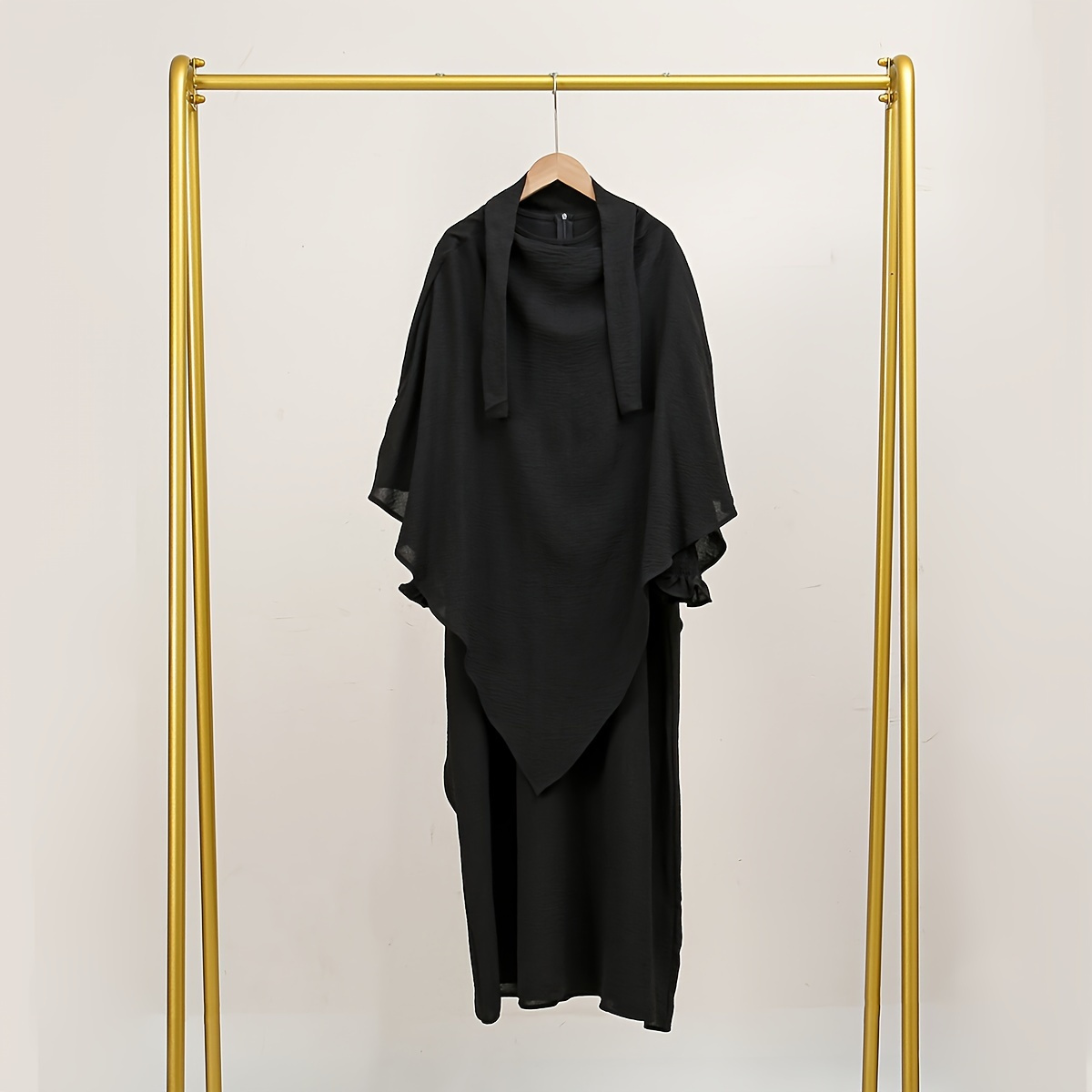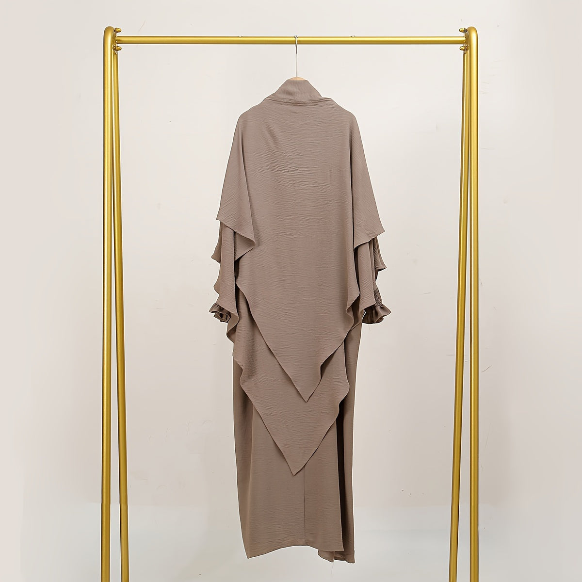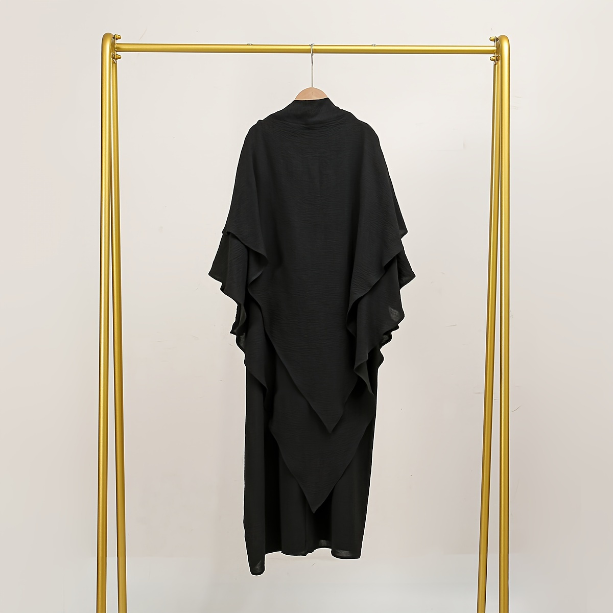 2pcs Elegant Black Polyester Hijab Robes with Pleated Sleeves - Breathable, Sun-Protective, and Stylish Khimar Abaya for Women, Perfect for Outdoor Wear, Hijab Scarf