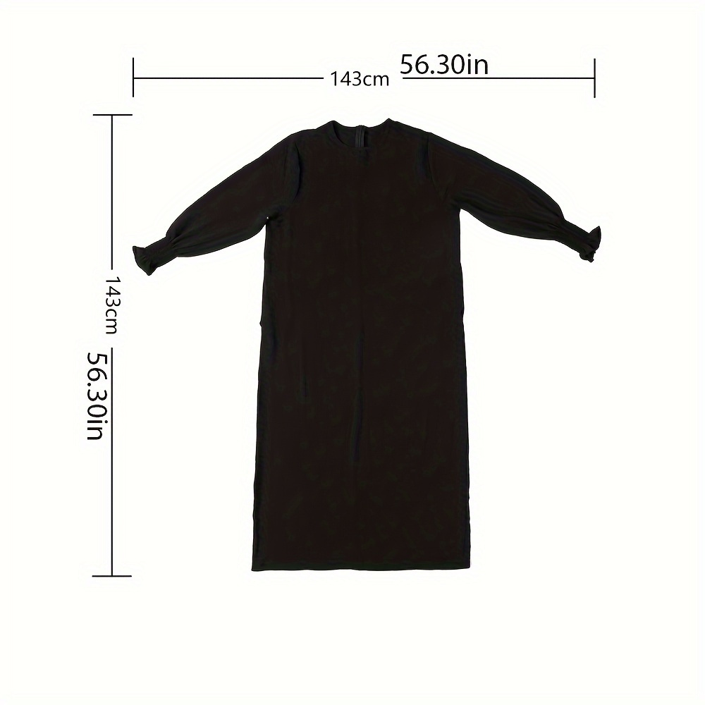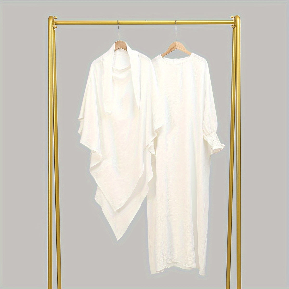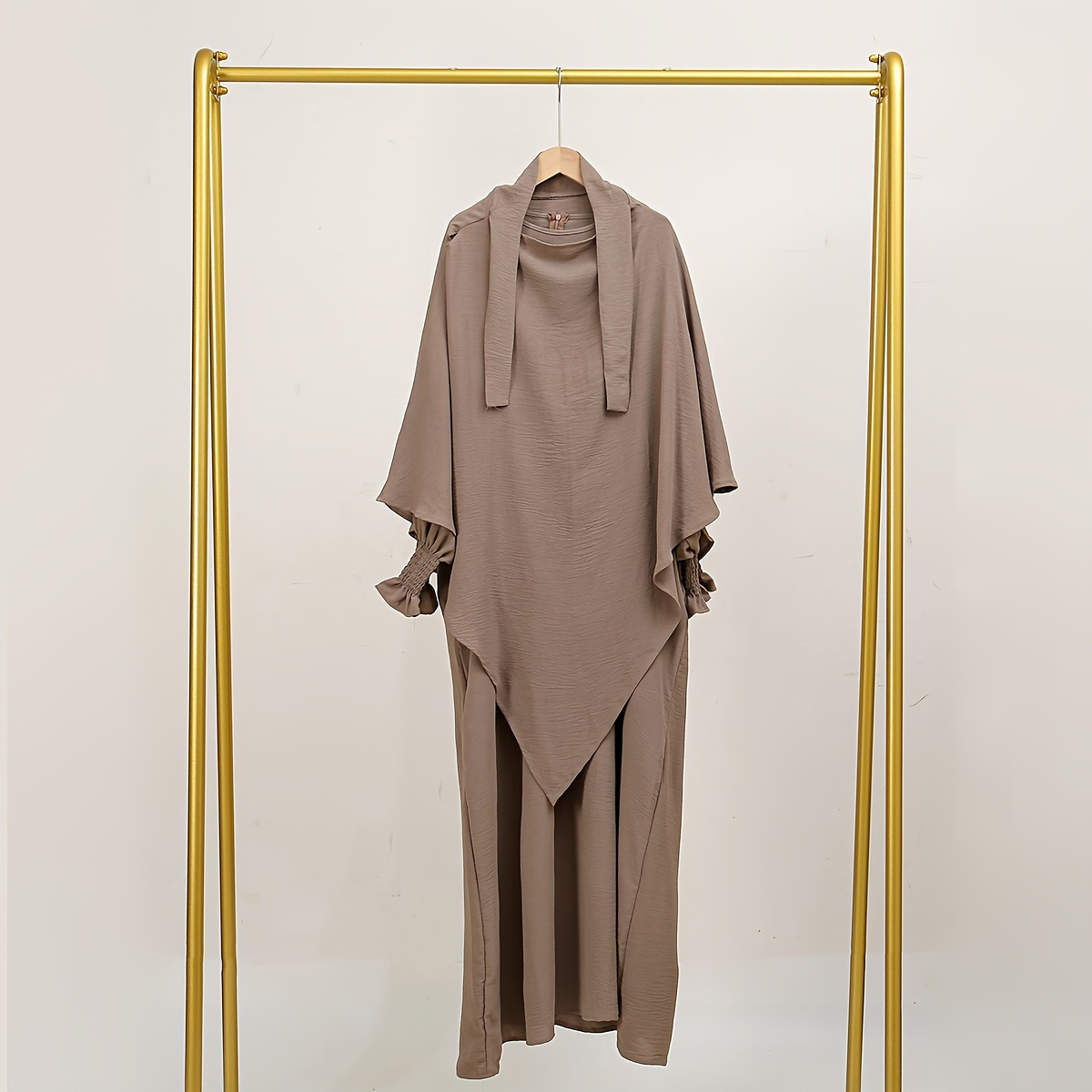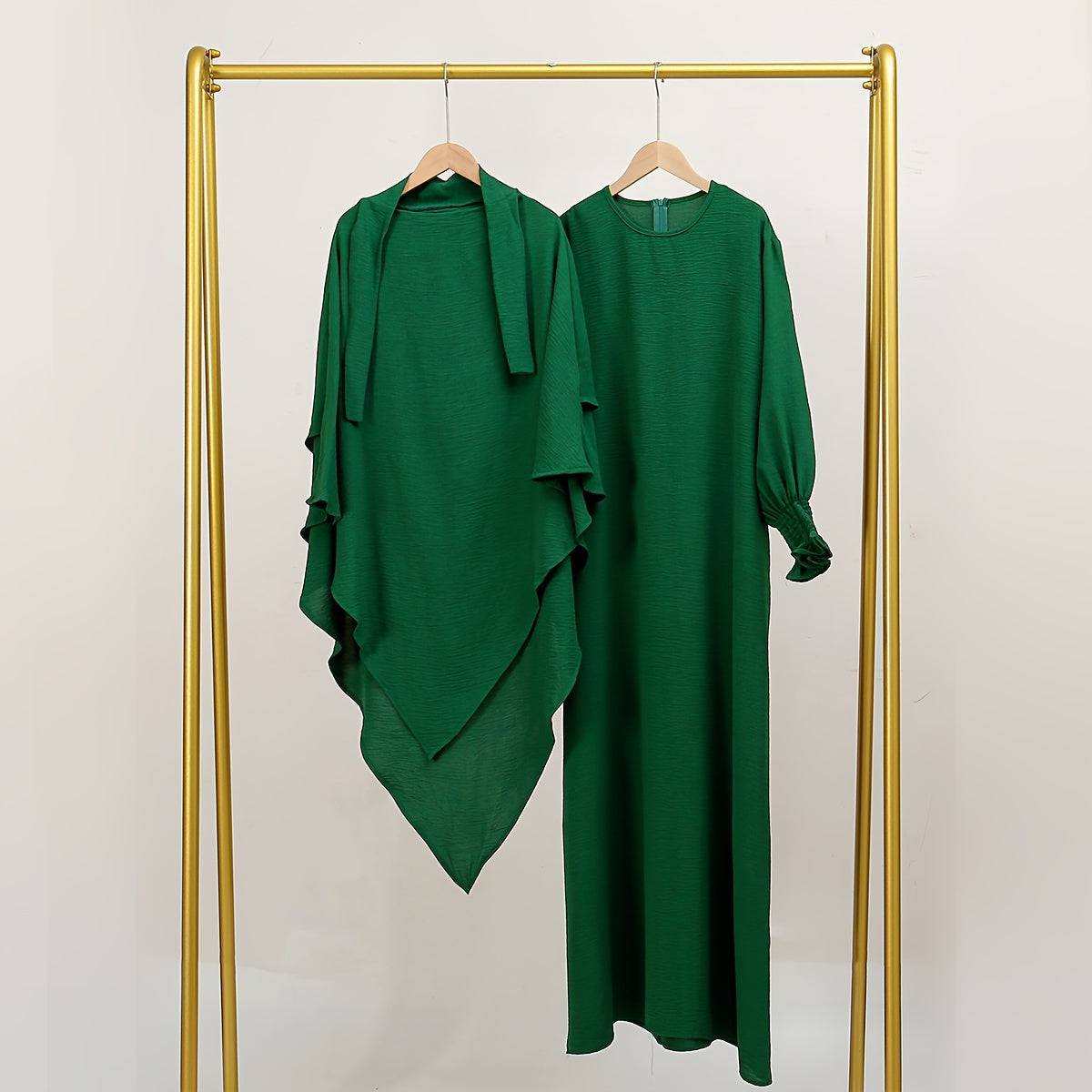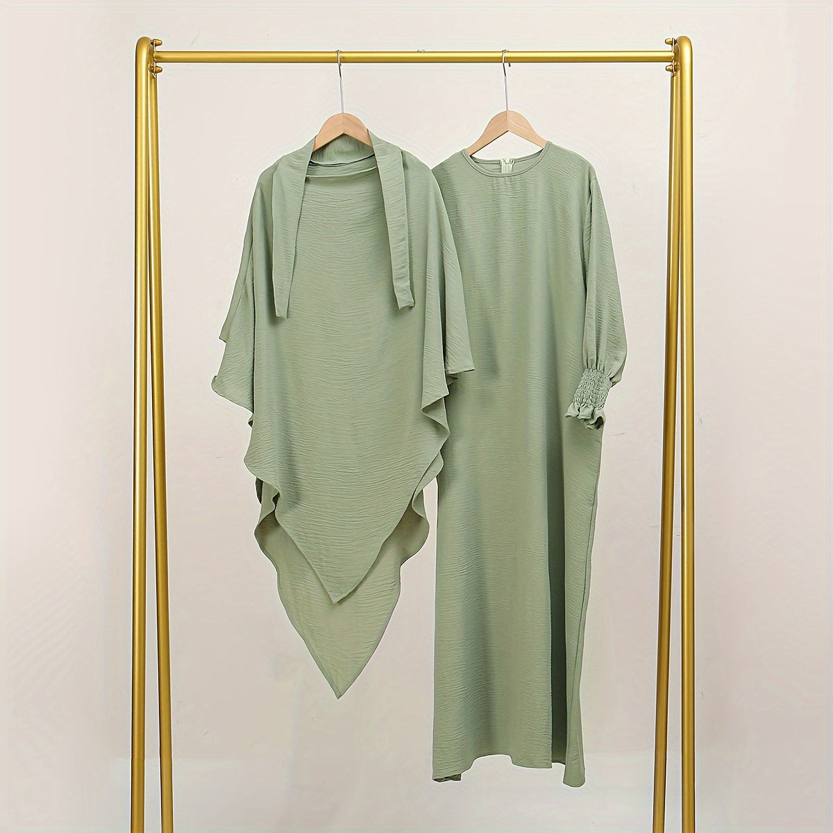2pcs Elegant Black Polyester Hijab Robes with Pleated Sleeves - Breathable, Sun-Protective, and Stylish Khimar Abaya for Women, Perfect for Outdoor Wear, Hijab Scarf