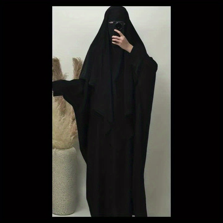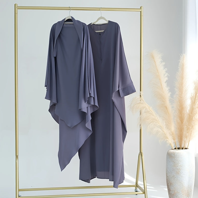 2pcs Solid Color Muslim Prayer Set, Convenient Zipper Khimar Abaya with Simple Headscarf Hijabs - Essential Fashionable Outing Essentials
