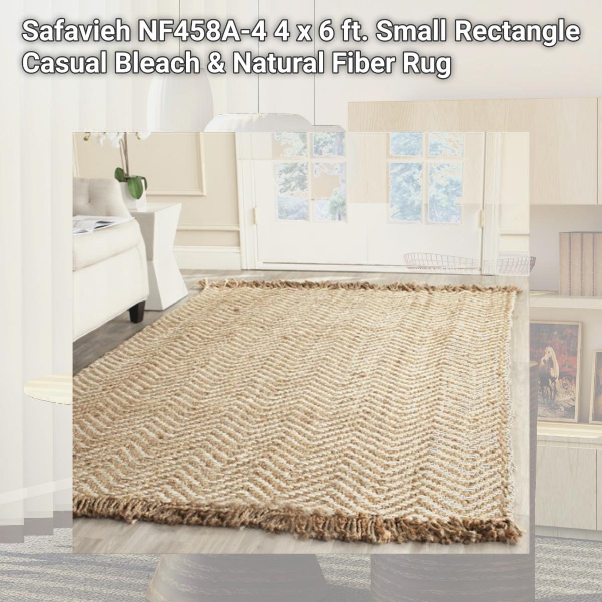 Think coastal living and casual beach house style with rugs so classic they'll even work in the city. Safavieh's natural fiber rugs are soft underfoot, textural, natural in color and woven of sustainably-harvested sisal and sea grass, or biodegradable j Features: Design Type - Casual .. Rug Collection - Natural Fiber .. Color - Bleach / Natural .. Rug Size - 4 ft. x 6 ft. . Origin - India .. Shape - Small Rectangle ( 3'x5' - 4'x6') .. Pile Height - 0 in.. Material - Jute .. Weave - Hand Woven .. Care Instructions Vacuum regularly. Brushless attachment is recommended. Avoid direct and continuous exposure to sunlight. Do not pull loose ends; clip them with scissors to remove. Remove spills immediately; blot with clean cloth by pressing firmly around the spill to absorb as much as possible. For hard-to-remove stains professional rug cleaning is recommended.