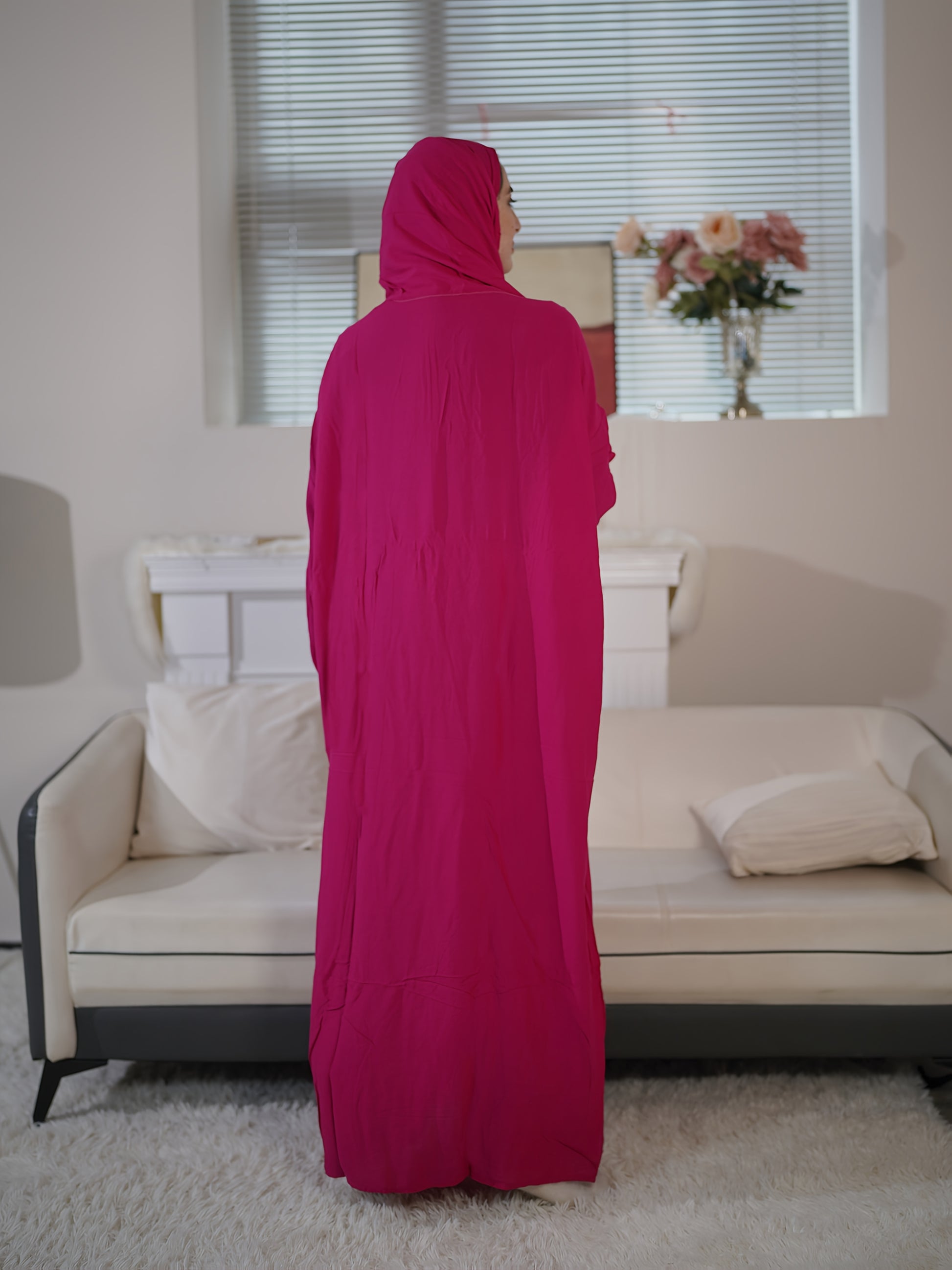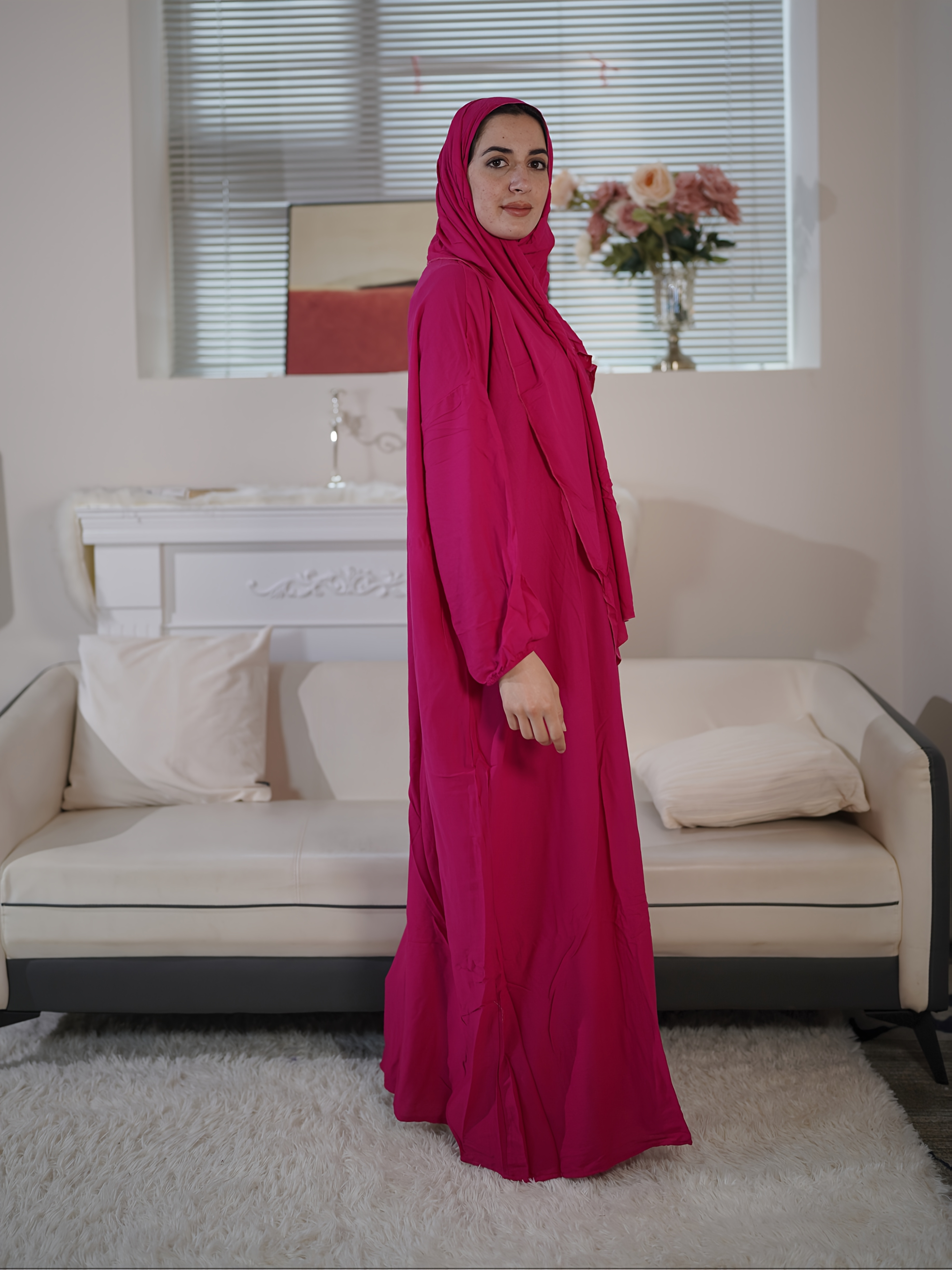 Long Sleeve Comfortable Women's Prayer Arabic Abaya - Integrated Hijab, Solid Color, Loose Fit, Rayon Fabric, Machine Washable