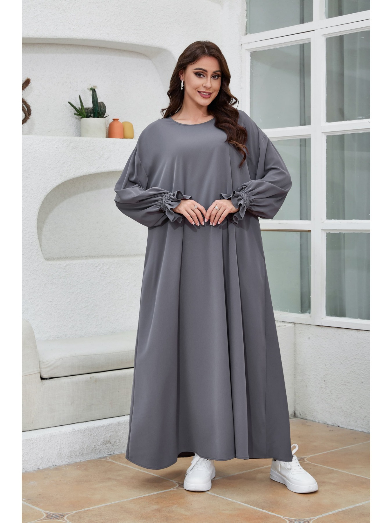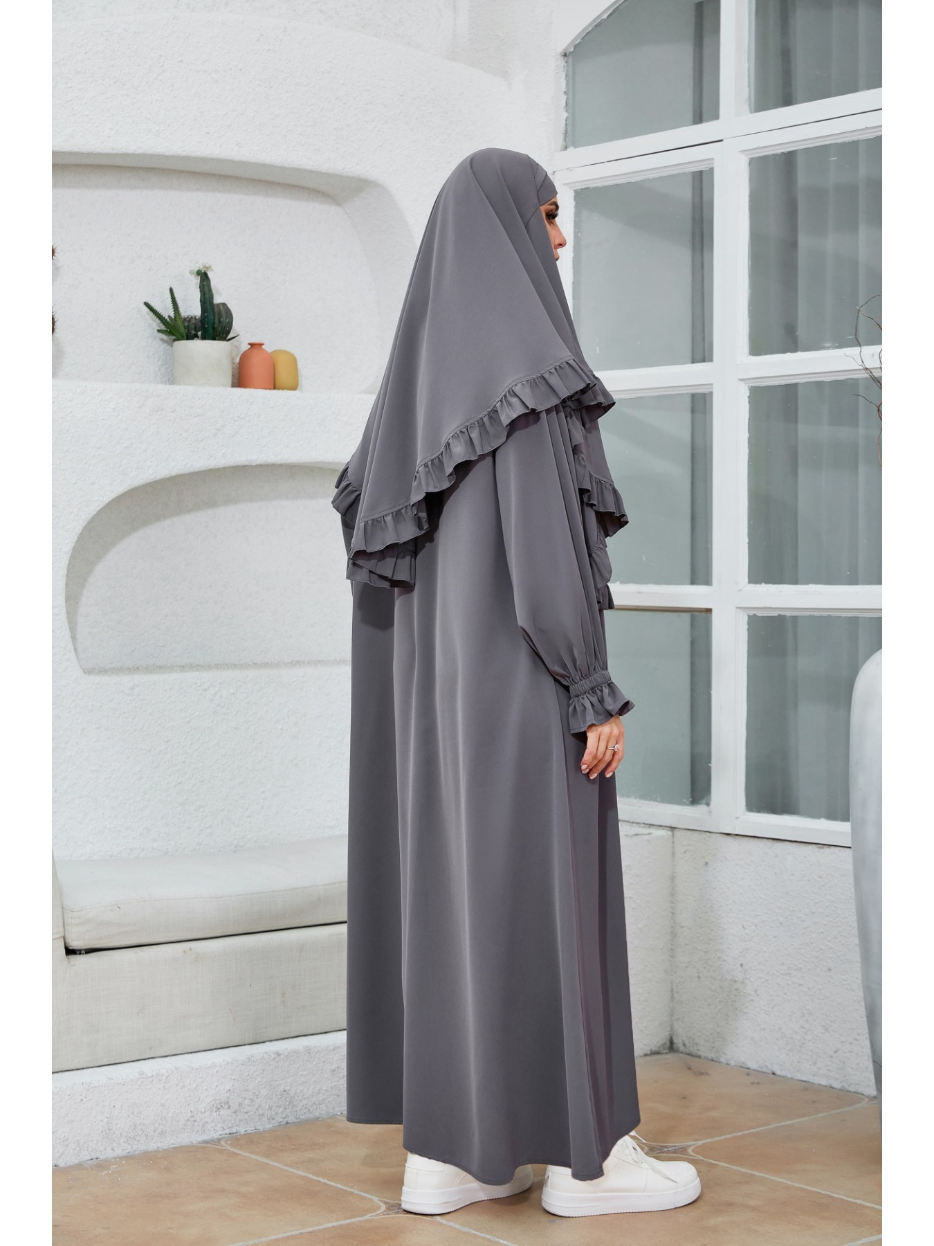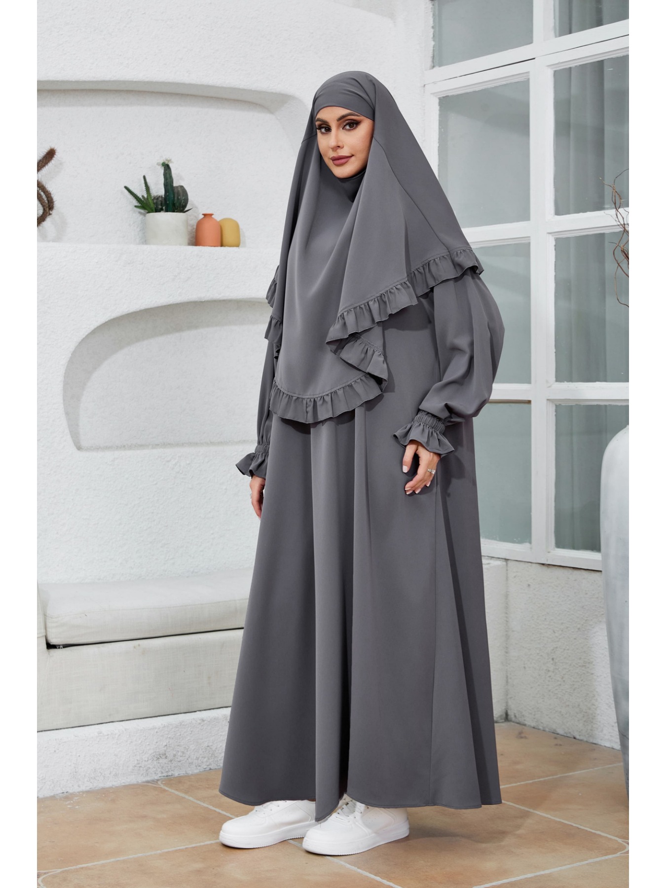 Polyester Women's Elegant Long Robe & Khimar Abaya Set | Turkish Dubai Style Hijab, Loose Fit, No Belt, Perfect for Spring/Summer, Middle Eastern Fashion, Long Sleeve