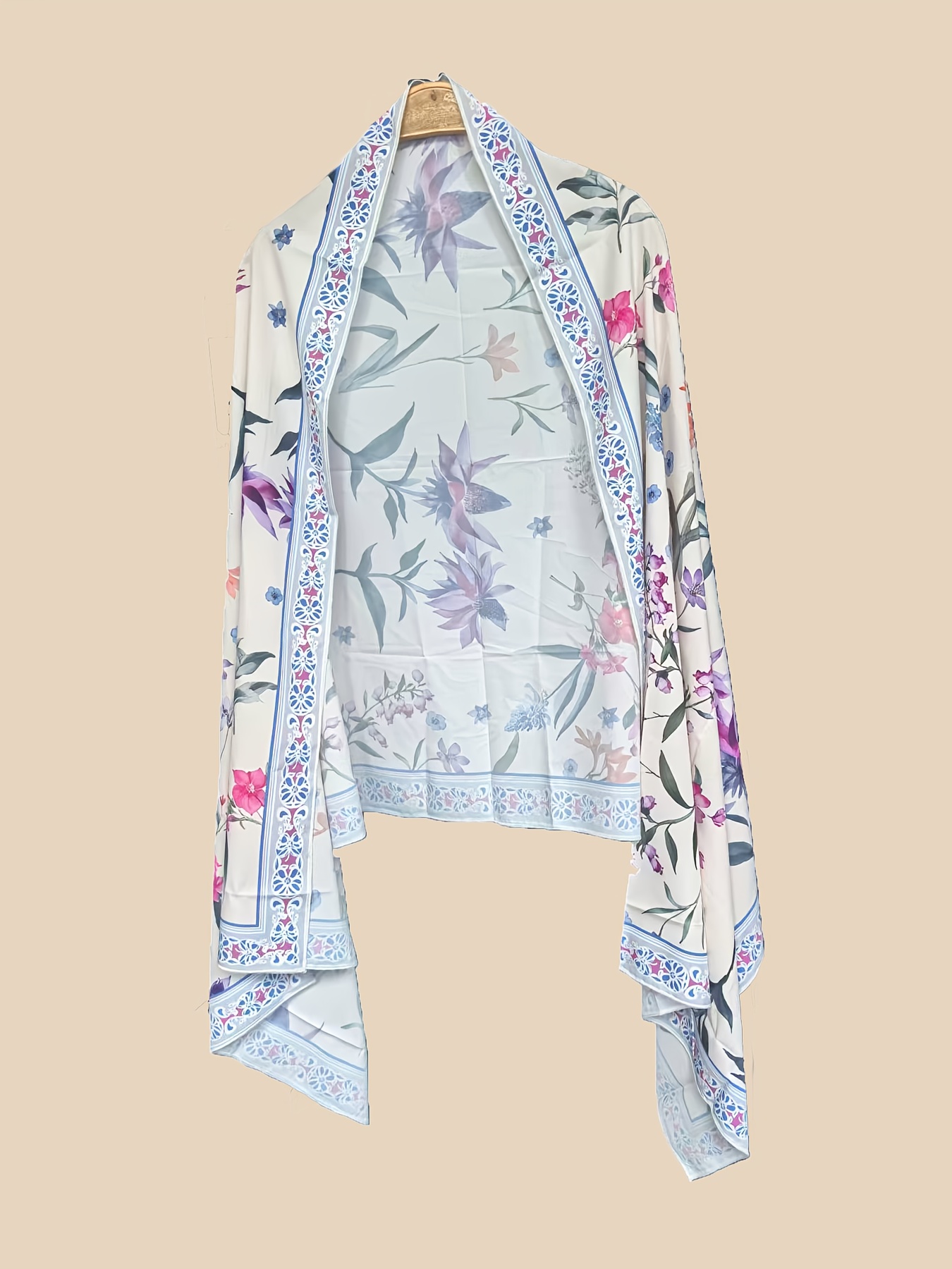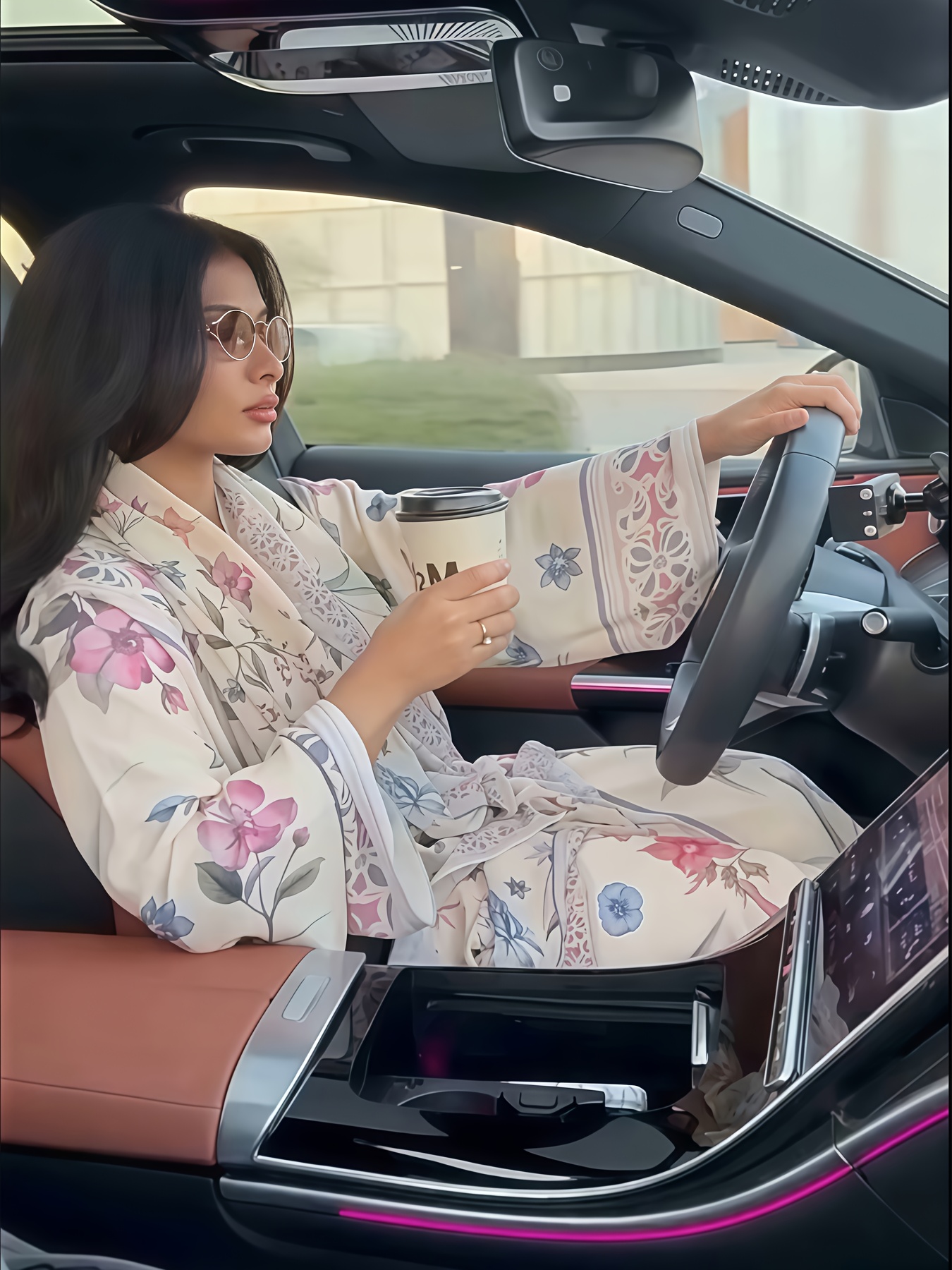 A stylish two-piece ensemble featuring a floral design, inspired by ethnic tribal aesthetics, including an abaya and scarf – perfect for everyday use, celebrations, travel, and social gatherings in Dubai.