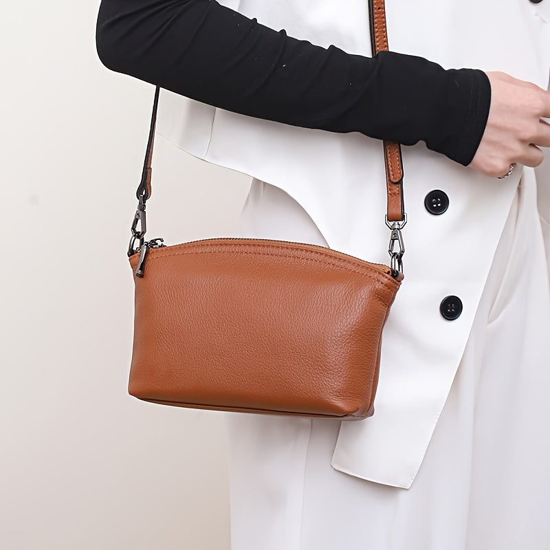 Genuine Leather Women's Handbag - Detachable Shoulder Strap, Large Capacity Tote with Zipper Closure, Soft Top Grain Genuine Leather, Oil Edge Finishing, Minimalist Style for Casual & Formal Use (Coffee, Light Brown,