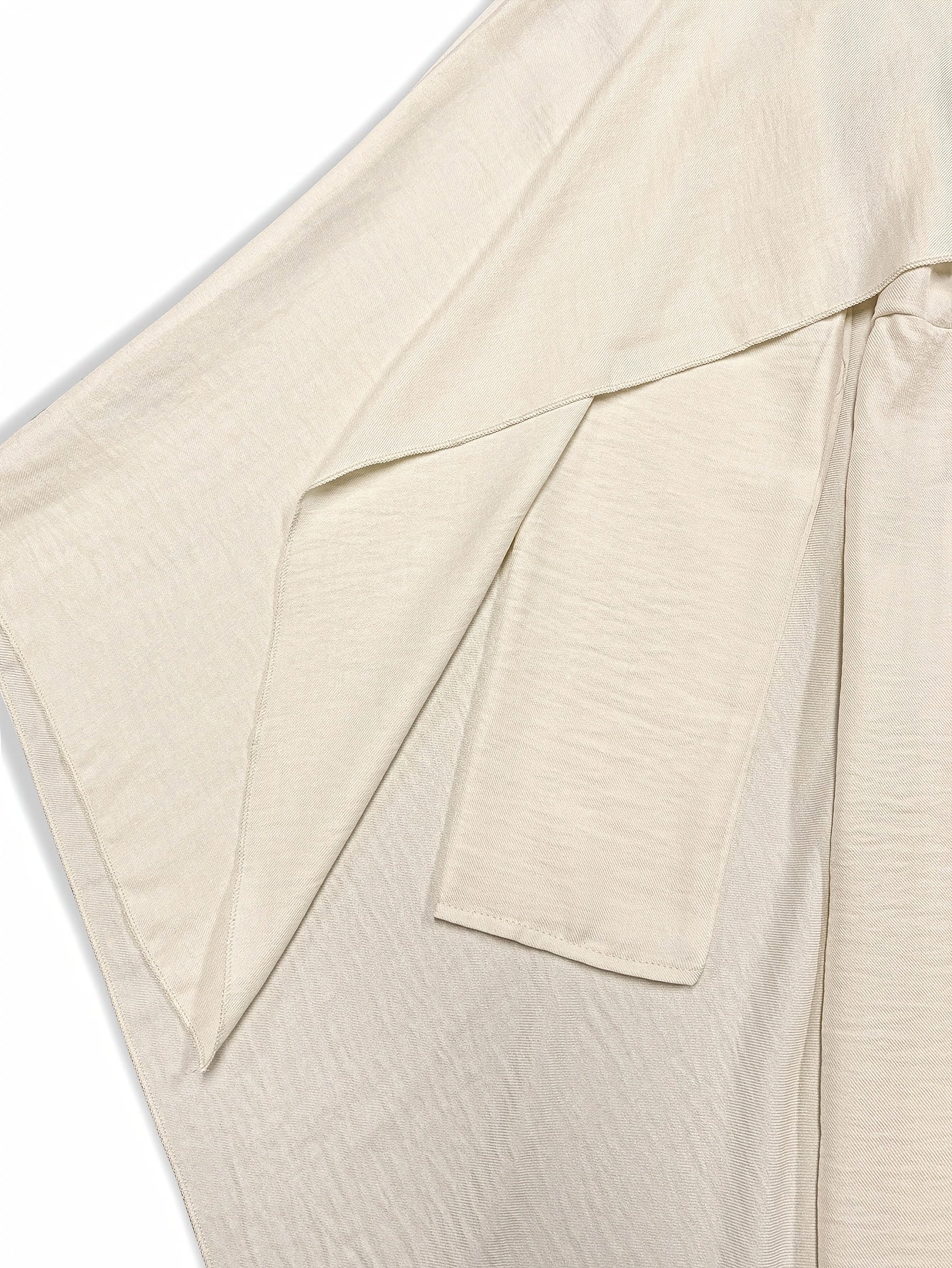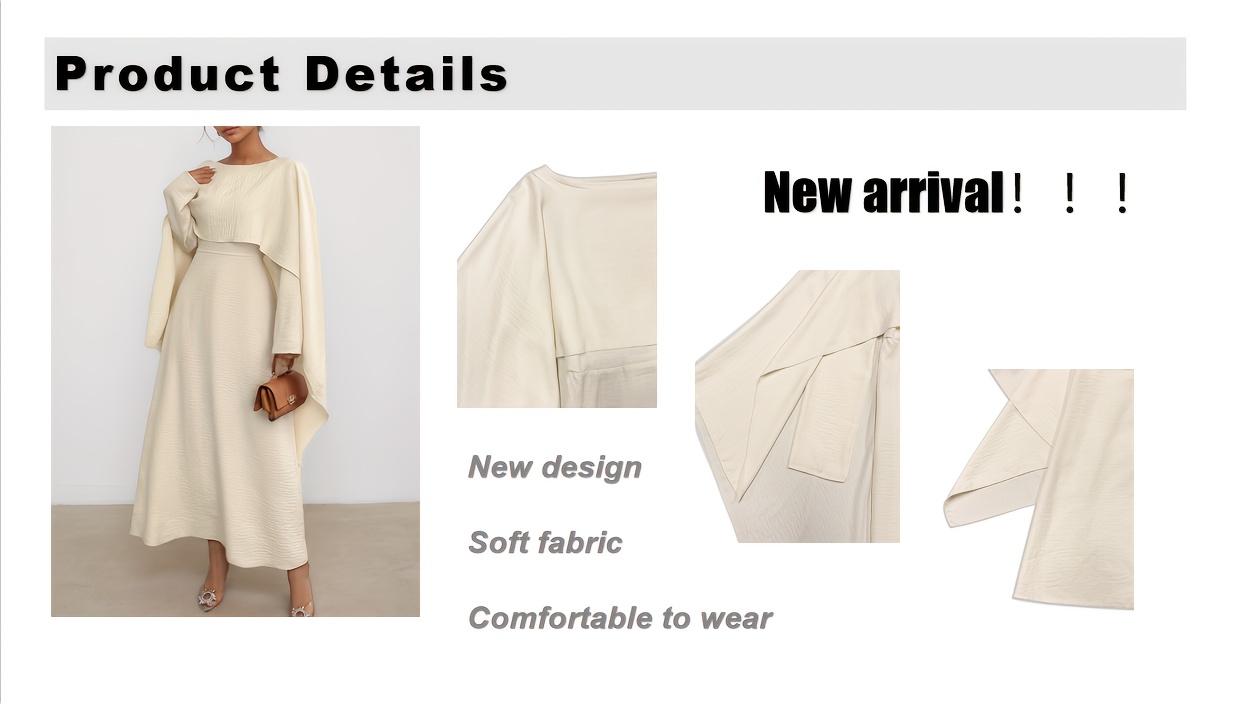 Ladies Spring And Summer New Style Solid Color Fashionable Elegant Temperament Long Sleeve Pleated Fake Two-Piece Design, Round Neck Irregular Long Women's Abaya Dress