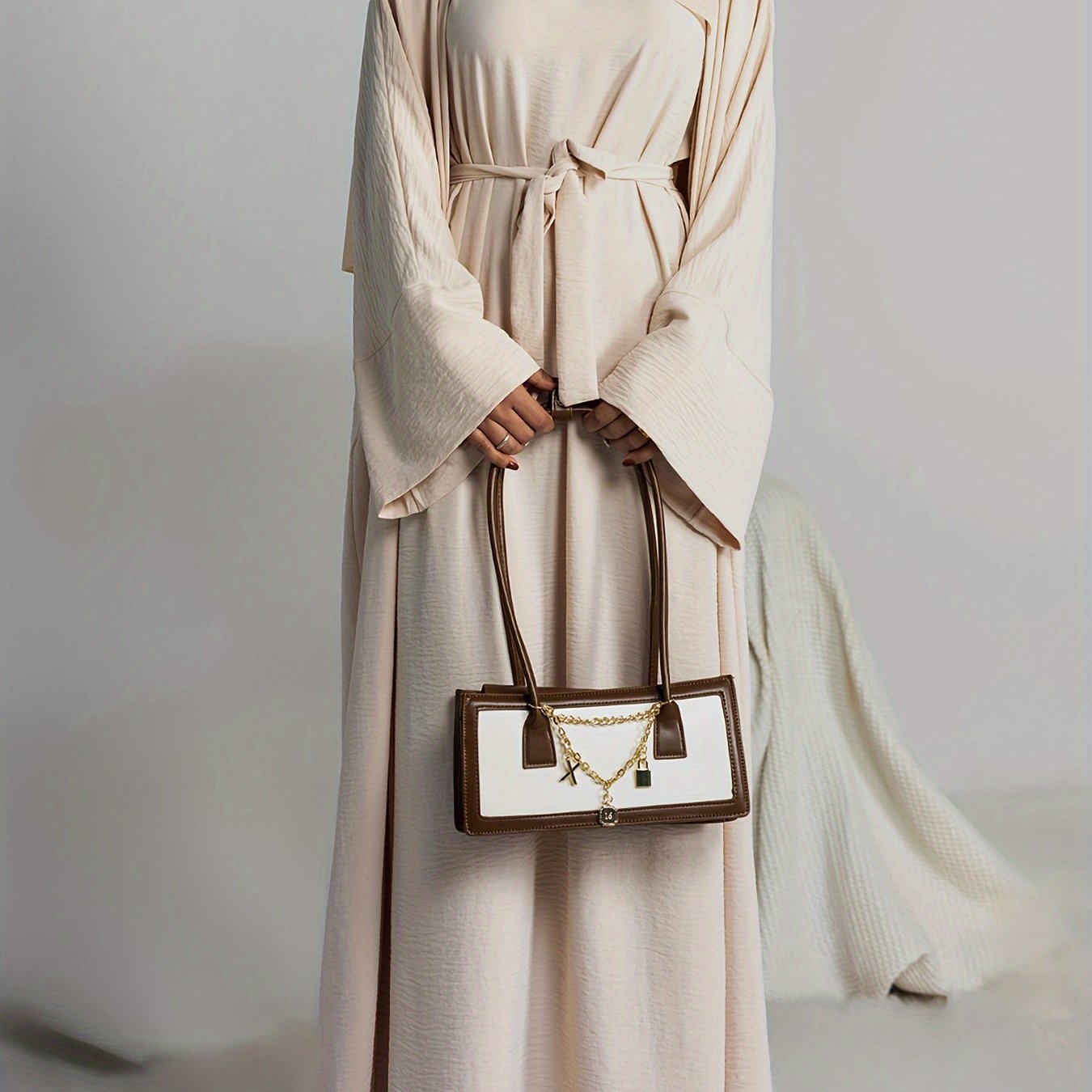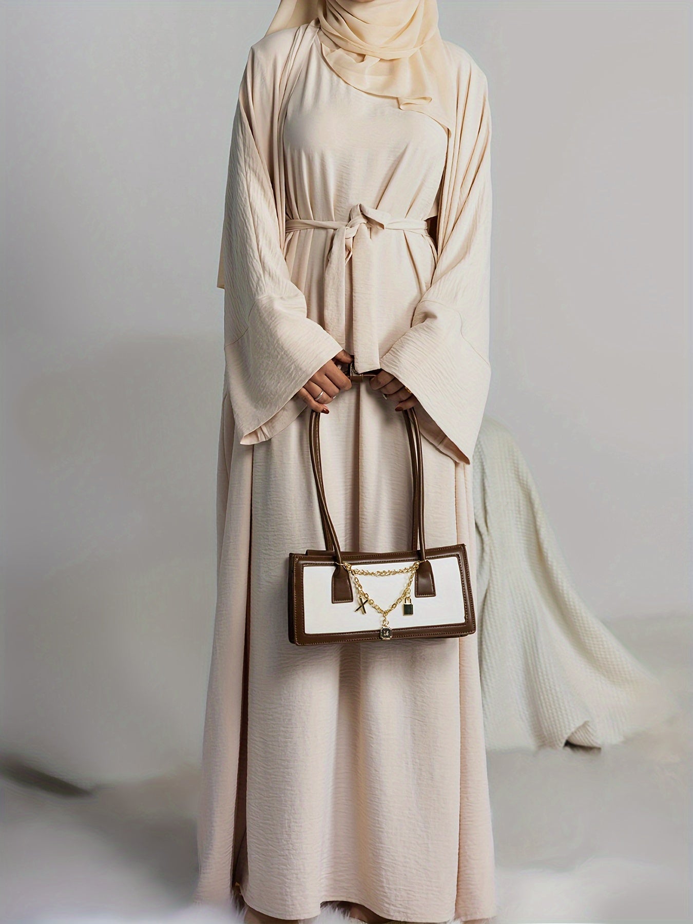 Muslim Lady 2pcs Arabic Abaya Set Eid Abaya Inner+open Abaya With Pocket