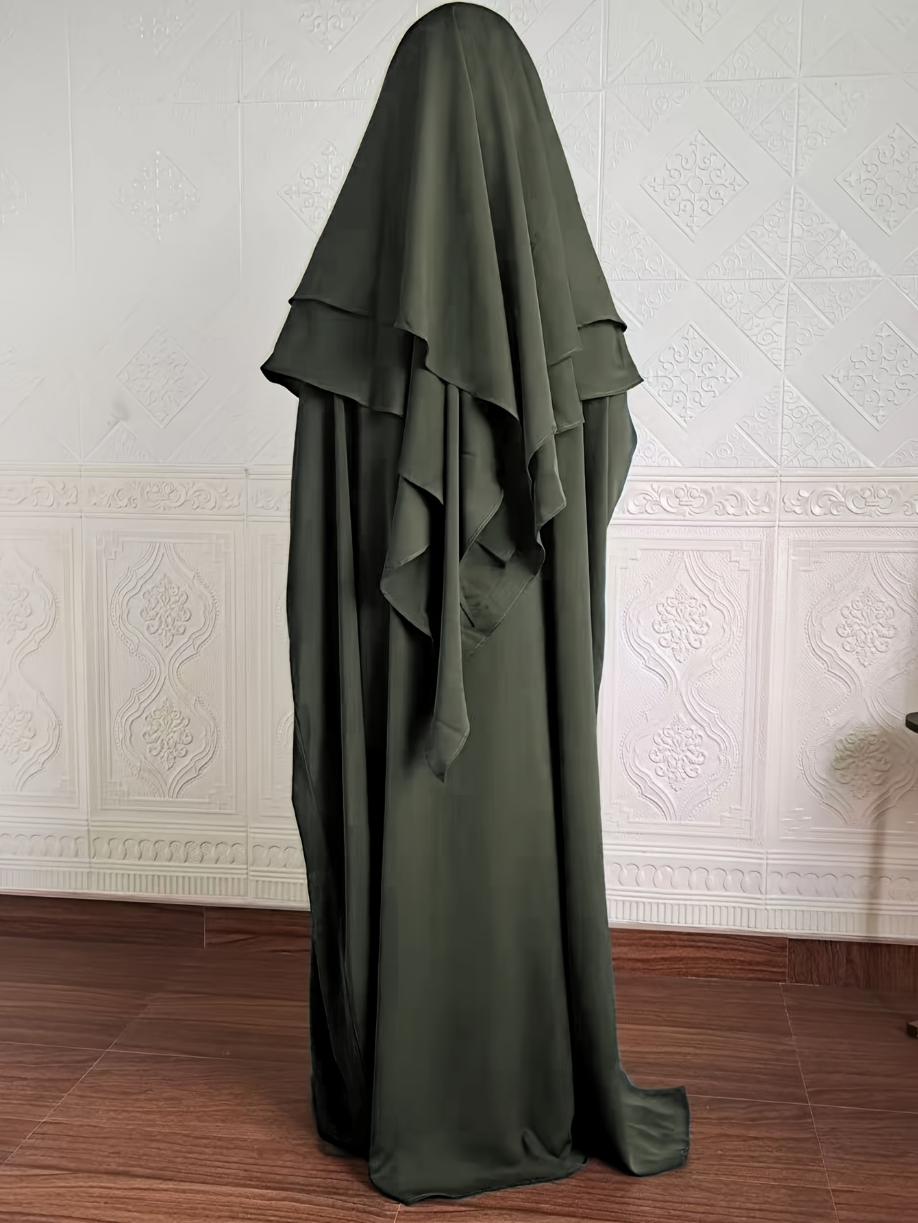 Plus Size - A Set of Elegant Plus Size Women Jilbaab Dresses, Middle East Dubai Solid Color Robe Dress Two Piece Set, Perfect for Ramadan And Islamic Prayers Abaya Femme Women Abaya Dubai Islamic Clothing Abaya Hijab Femme Prayer Jil