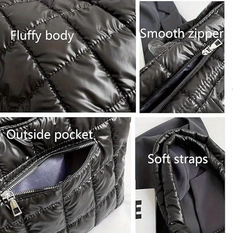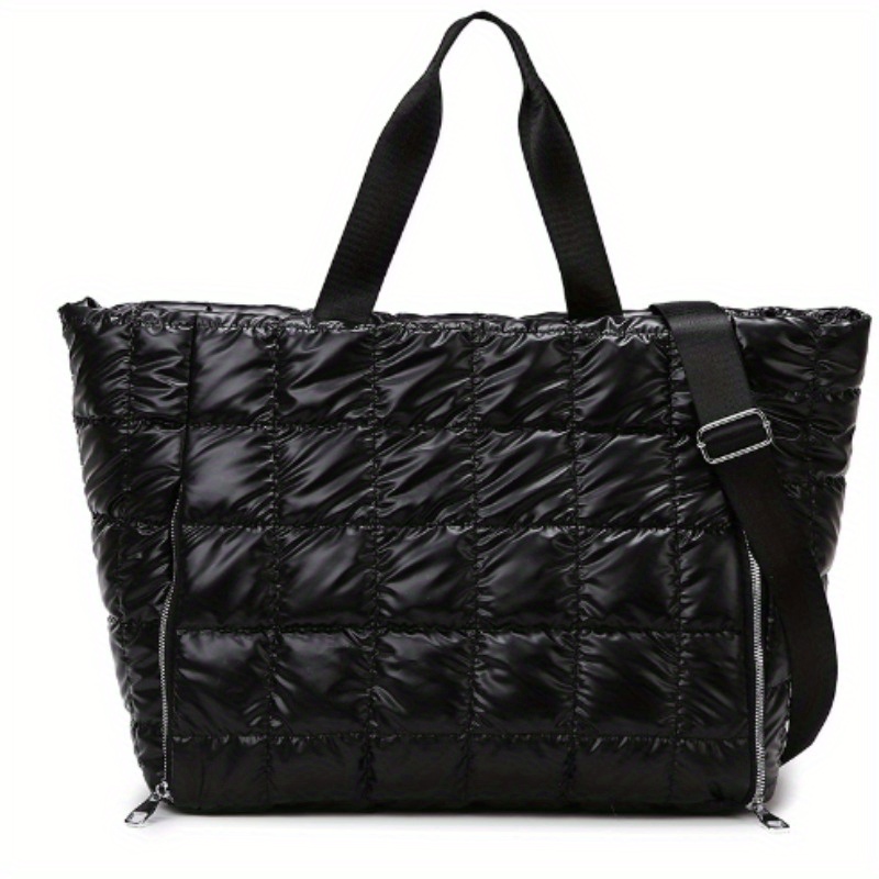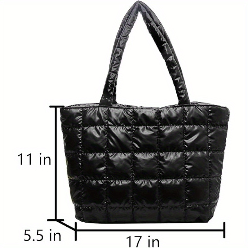 [Premium Material]This quilted bag is made of high-quality fabric and padded with cotton for a soft and comfortable feel. Weighing only 0.44lb, this lightweight puffer bag is lighter than a bottle of water, therefore this tote bag for women folds up for easy carrying. Good choice of travel bag.,[Large Capacity Structure] Sized about 17x5.5x11inch, this puffer tote bag is spacious enough to hold all your daily essentials without looking bulky. Zipper closure design keeps your essentials