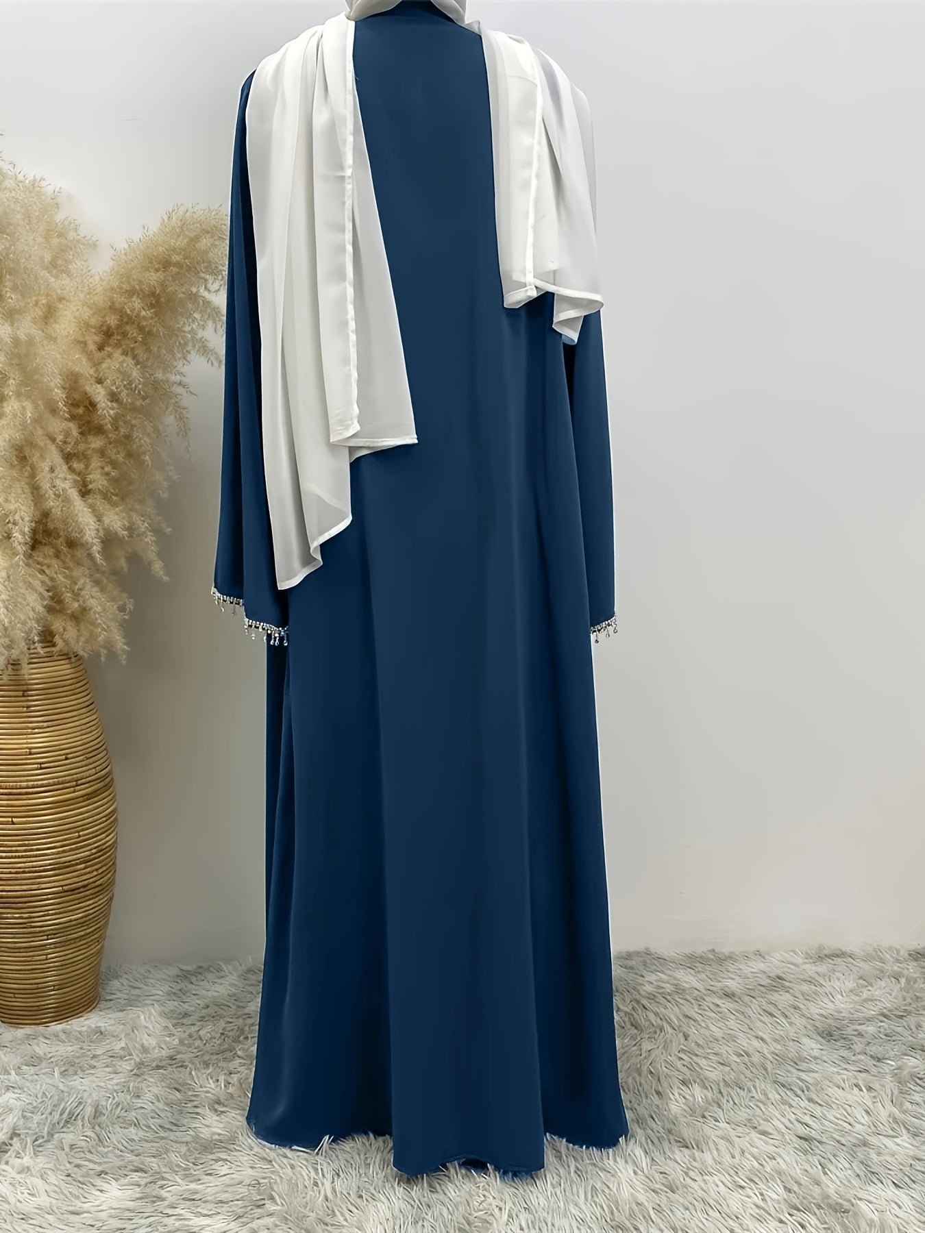 Ramadan Muslim Pakistani Abaya Women's 2pcs Set Rhinestone Open Front Hijab Dress Dubai Kaftan