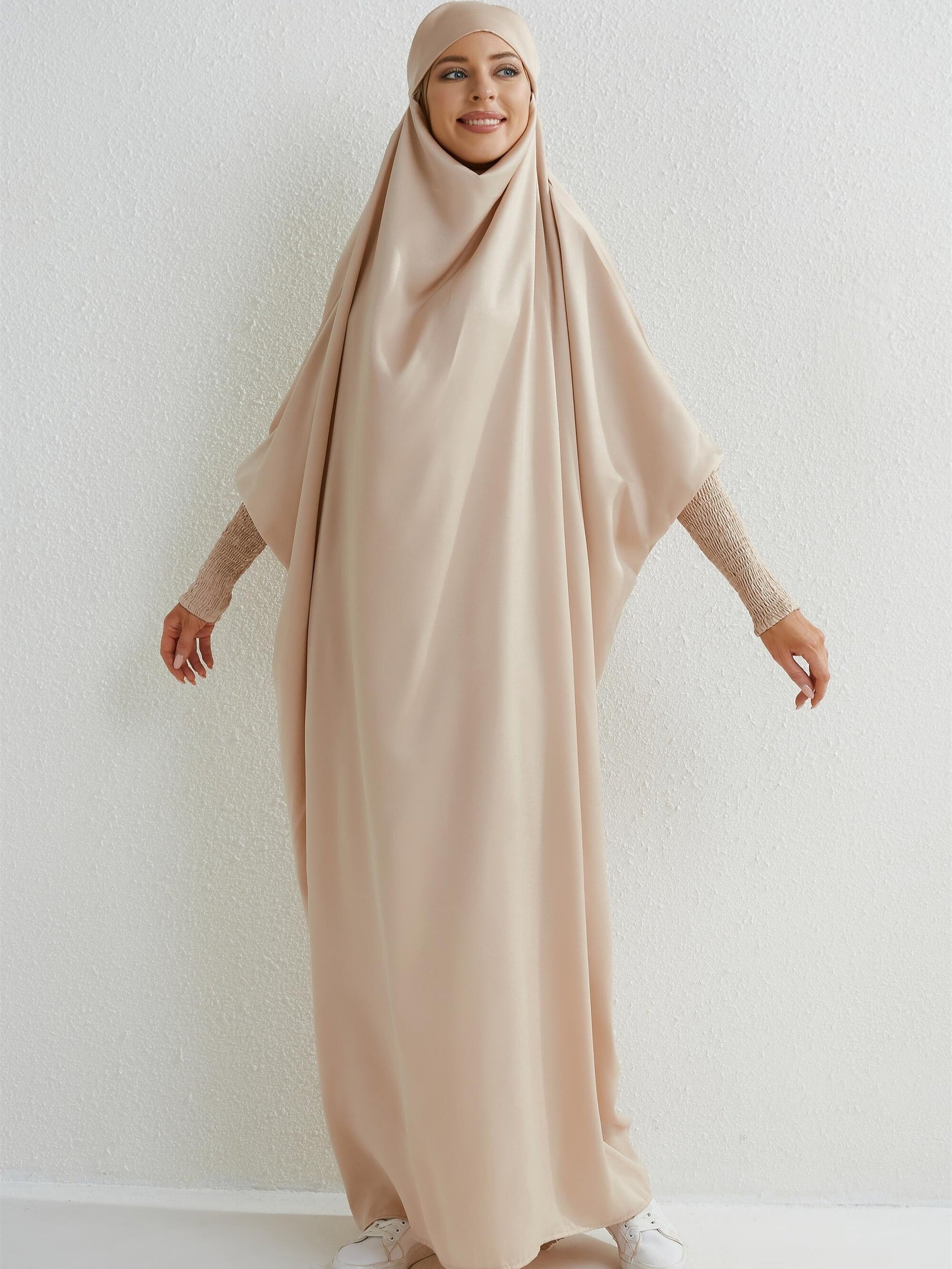 Ramadan Solid One-Piece Prayer Modest Abaya Burkha - Modest Full Length Dress With Hijab - For Women - Suitable for Ramadan & Islamic Events - Perfect Gift for Muslim Women