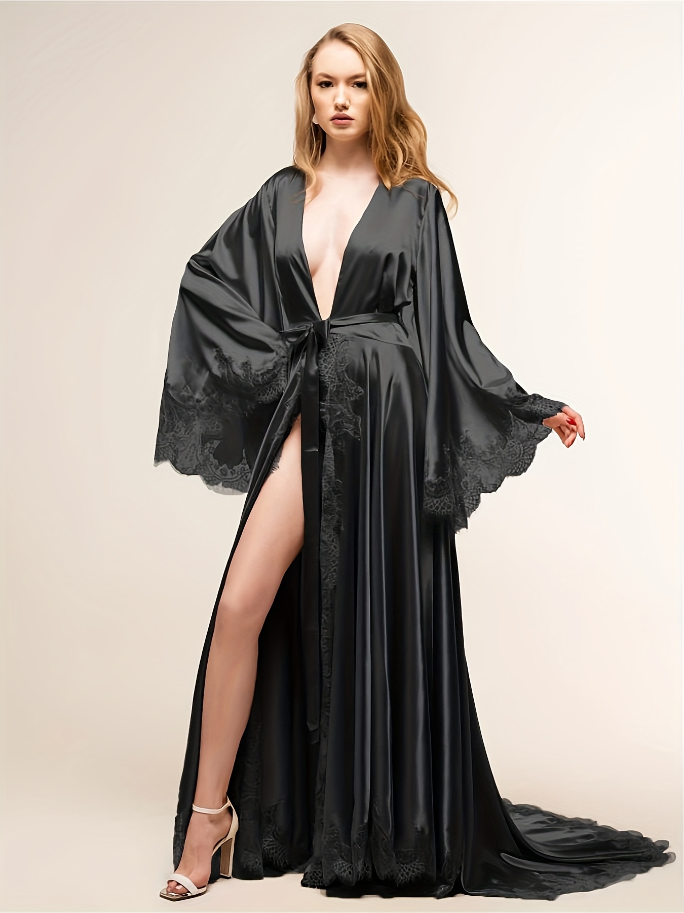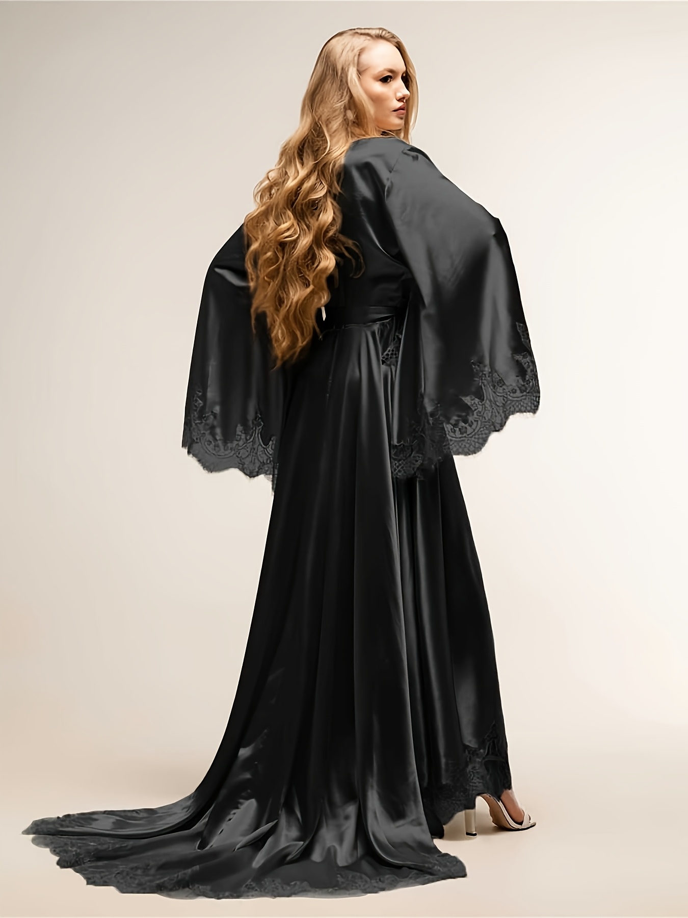 Women's satin robe and kimono lace-edged robe bridesmaid pajamas Silky soft suitable for wedding bride party trumpet long-sleeved sexy