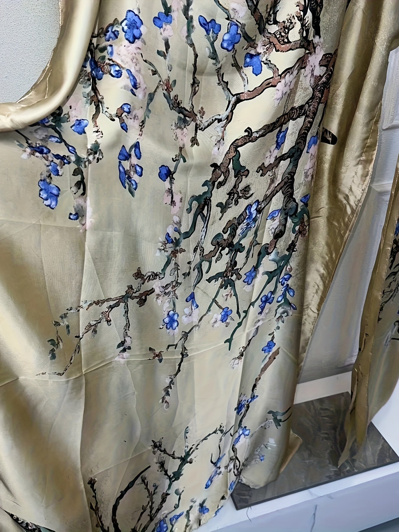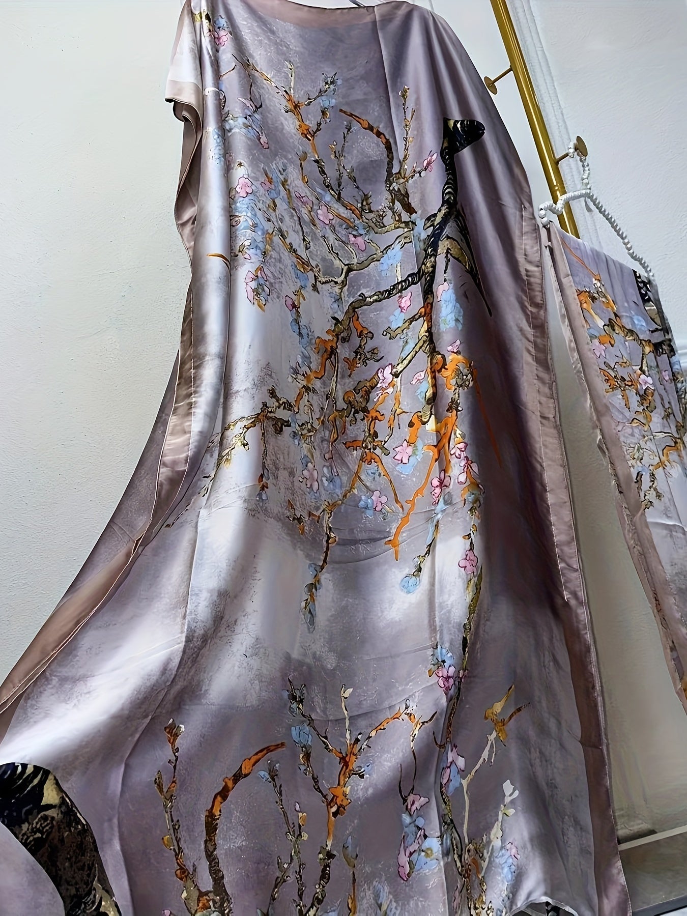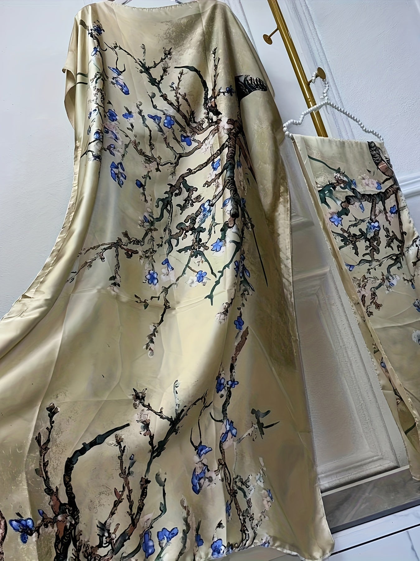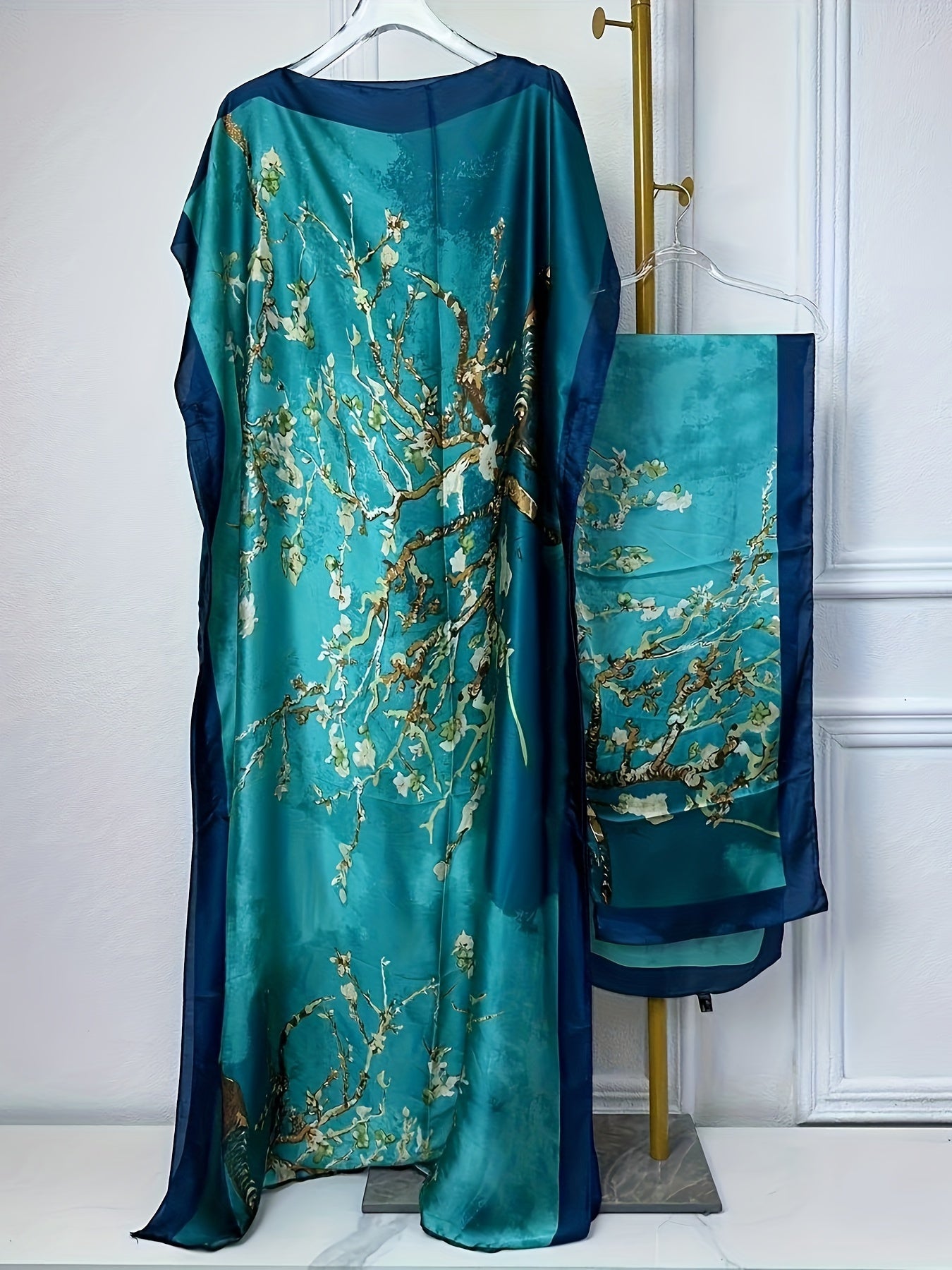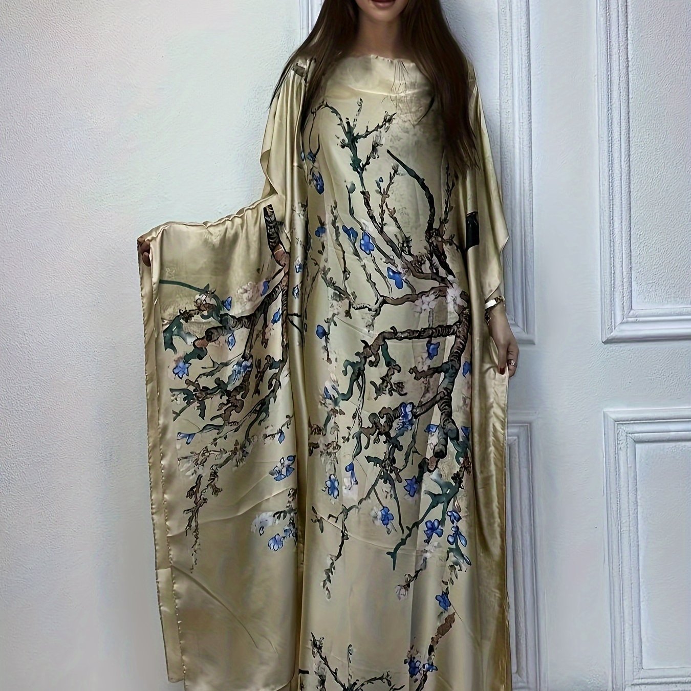 Tree Print Crew Neck Kaftan Abaya, Elegant Batwing Sleeve Loose Fit Maxi Dress With A Hijab, Women's Clothing