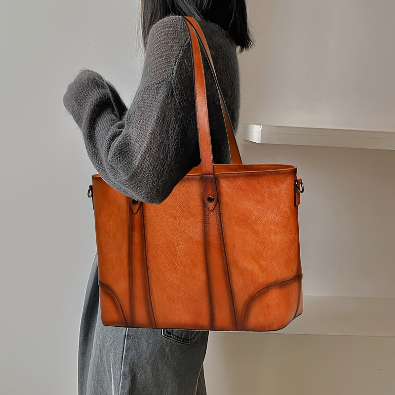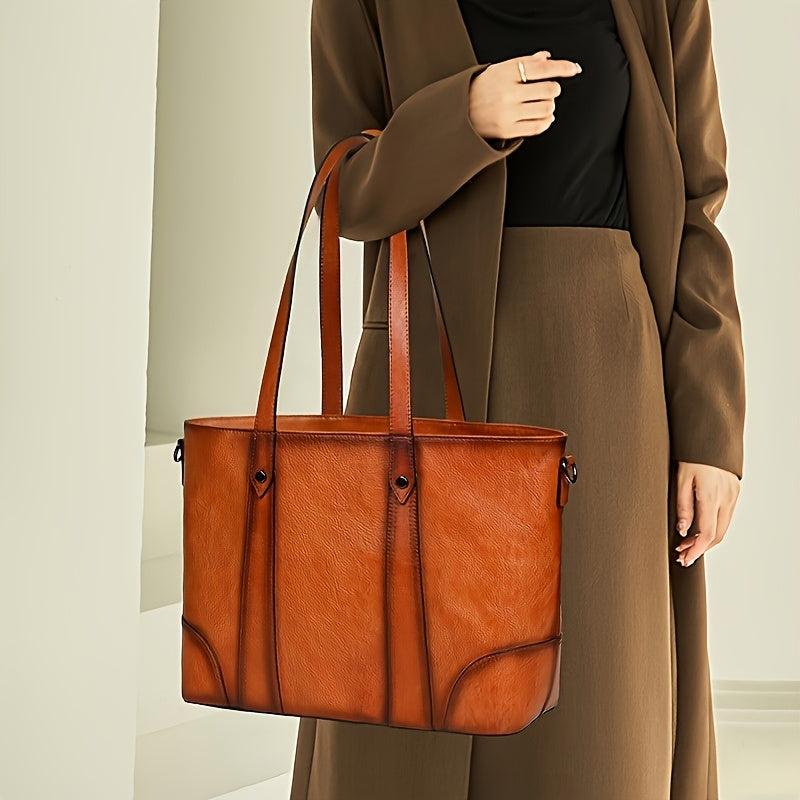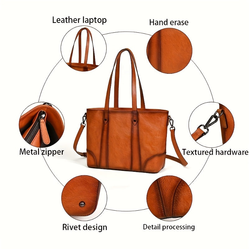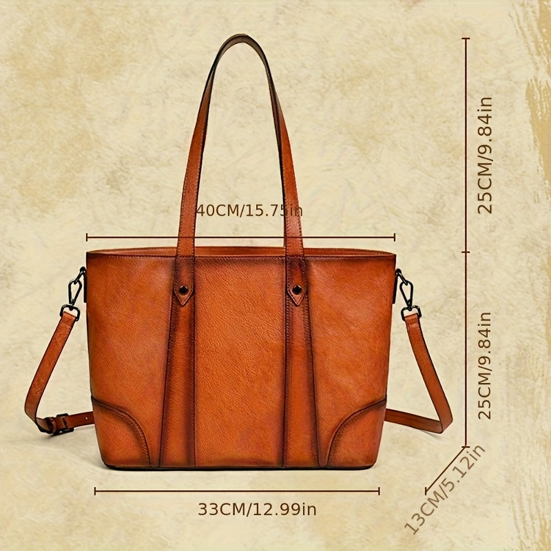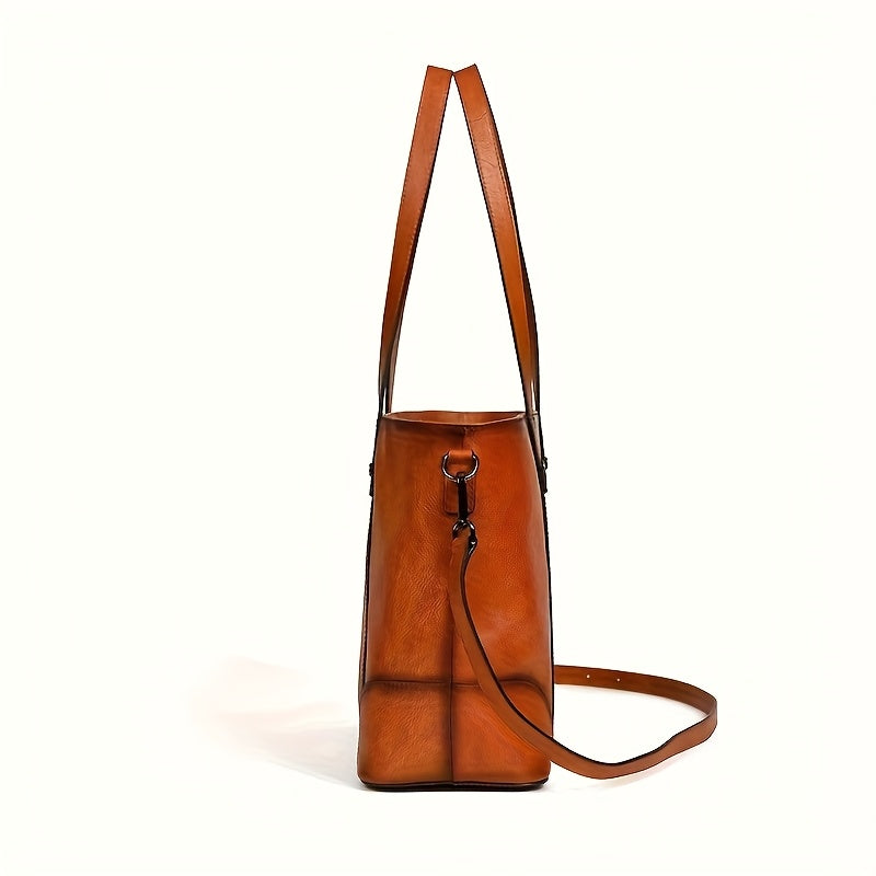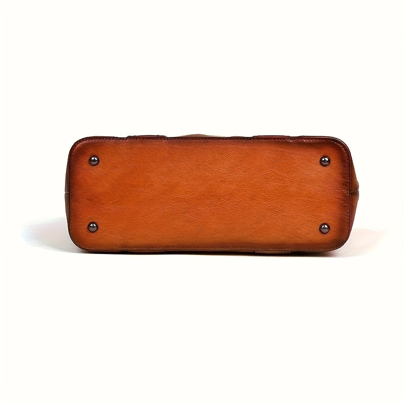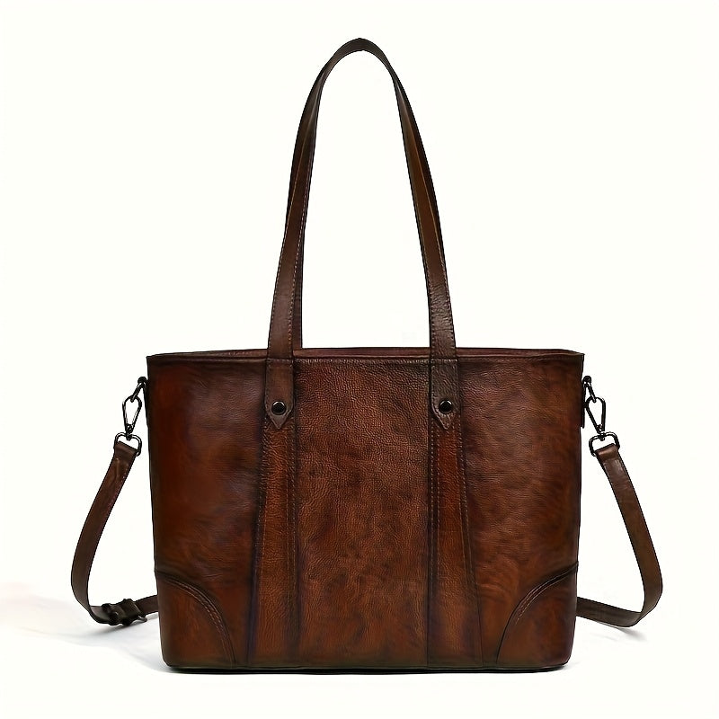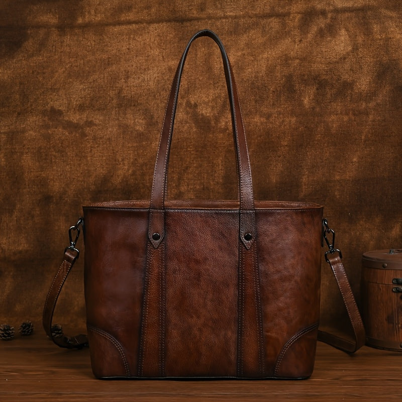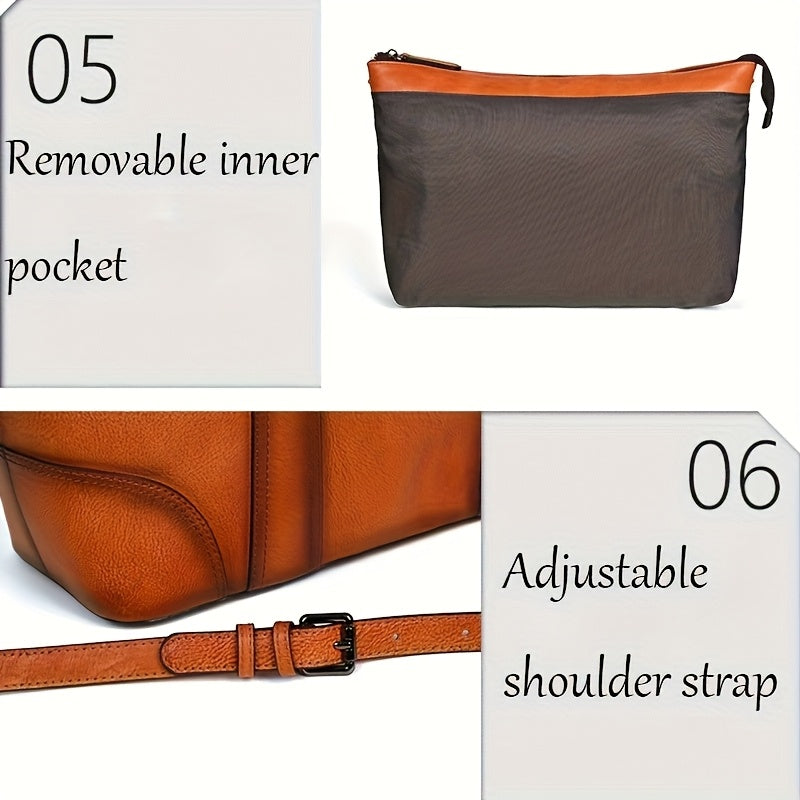 Vintage-Style Genuine Leather Shoulder Bag for Women - Adjustable Crossbody Handbag with Multiple Compartments, Brown/Burgundy, Perfect for Travel, School, and Work, Travel Handbag | Minimalist Design | Metal Buckle Closure