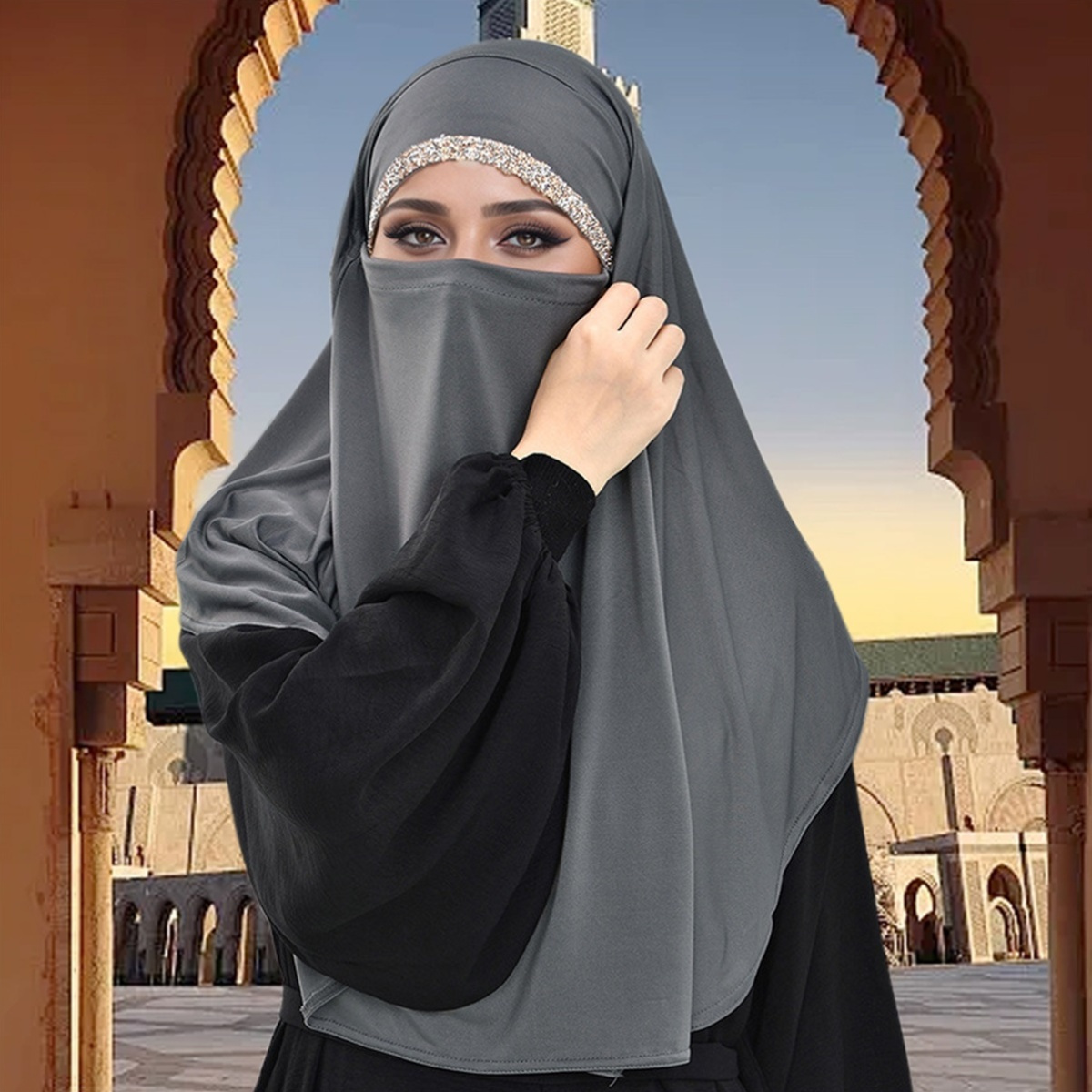 Women Khimar Abaya, Elegant Shiny Hot Fix Drills Hijab Scarf Lightweight Middle East Fashion Accessory