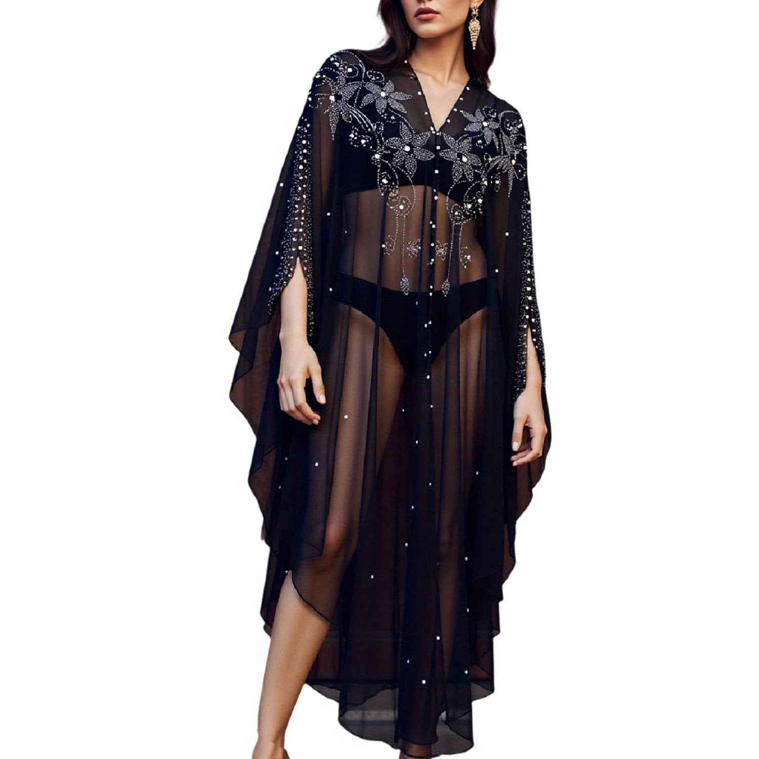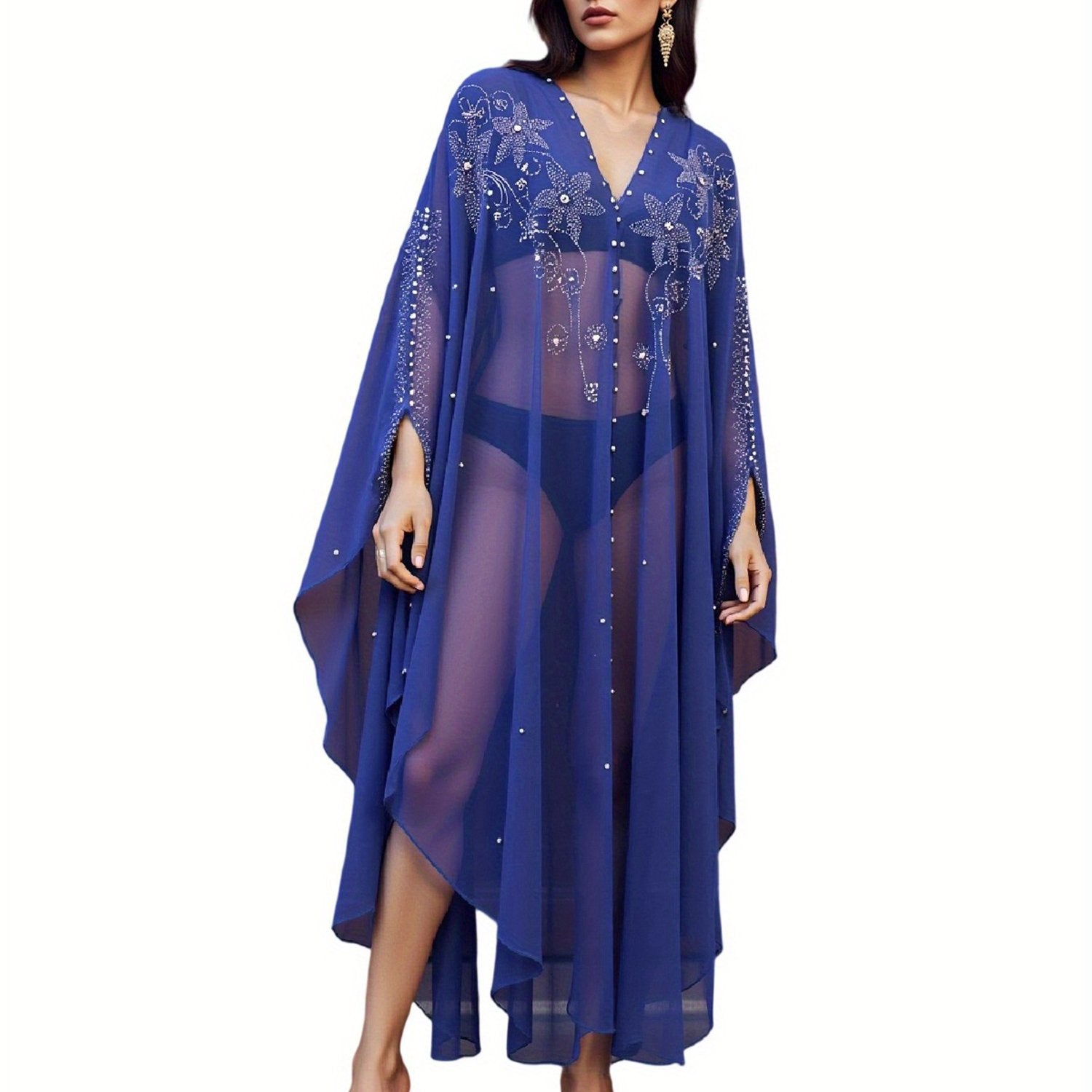 Women's Autumn Long Kaftan Dress Long Bat Sleeve Hooded Rhinestone Cape Abaya Arab Dress