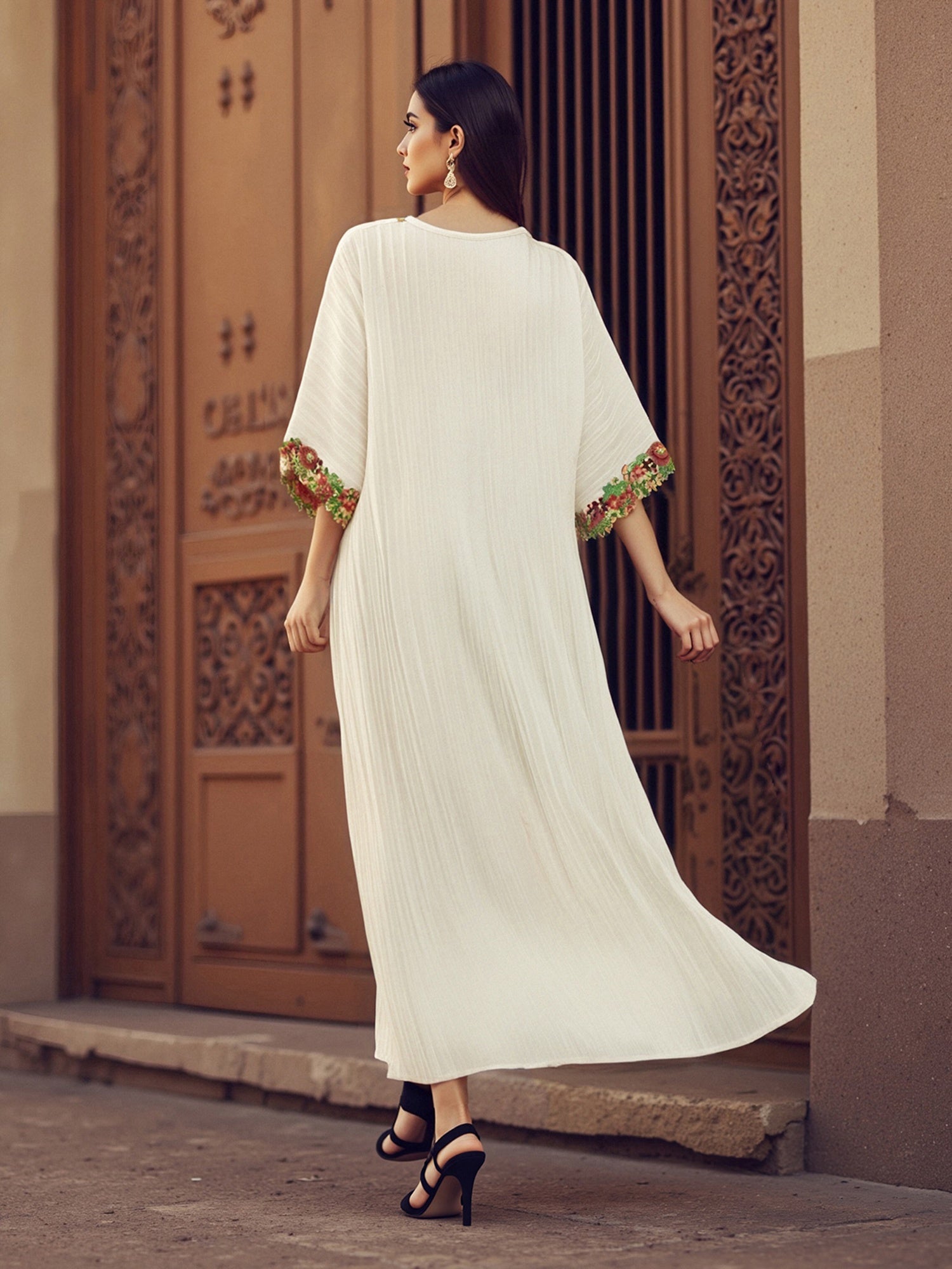 Women's Elegant Islamic Palestinian Abaya - Flowy Ramadan Prayer Dress & Arabic Robe with V-Neck, Machine Washable Islamic Clothing for Daily Prayer, Eid, Travel - Modest Muslim Women's