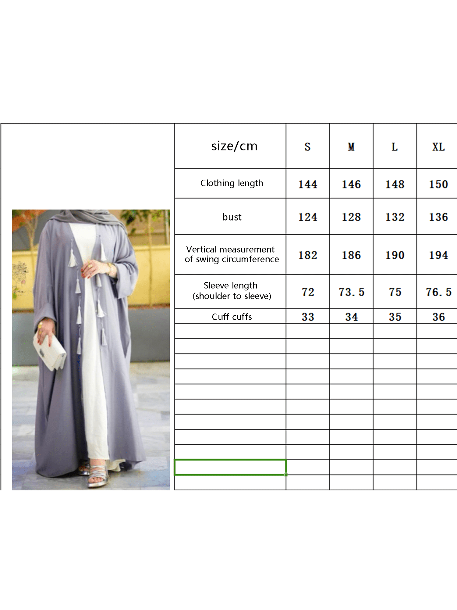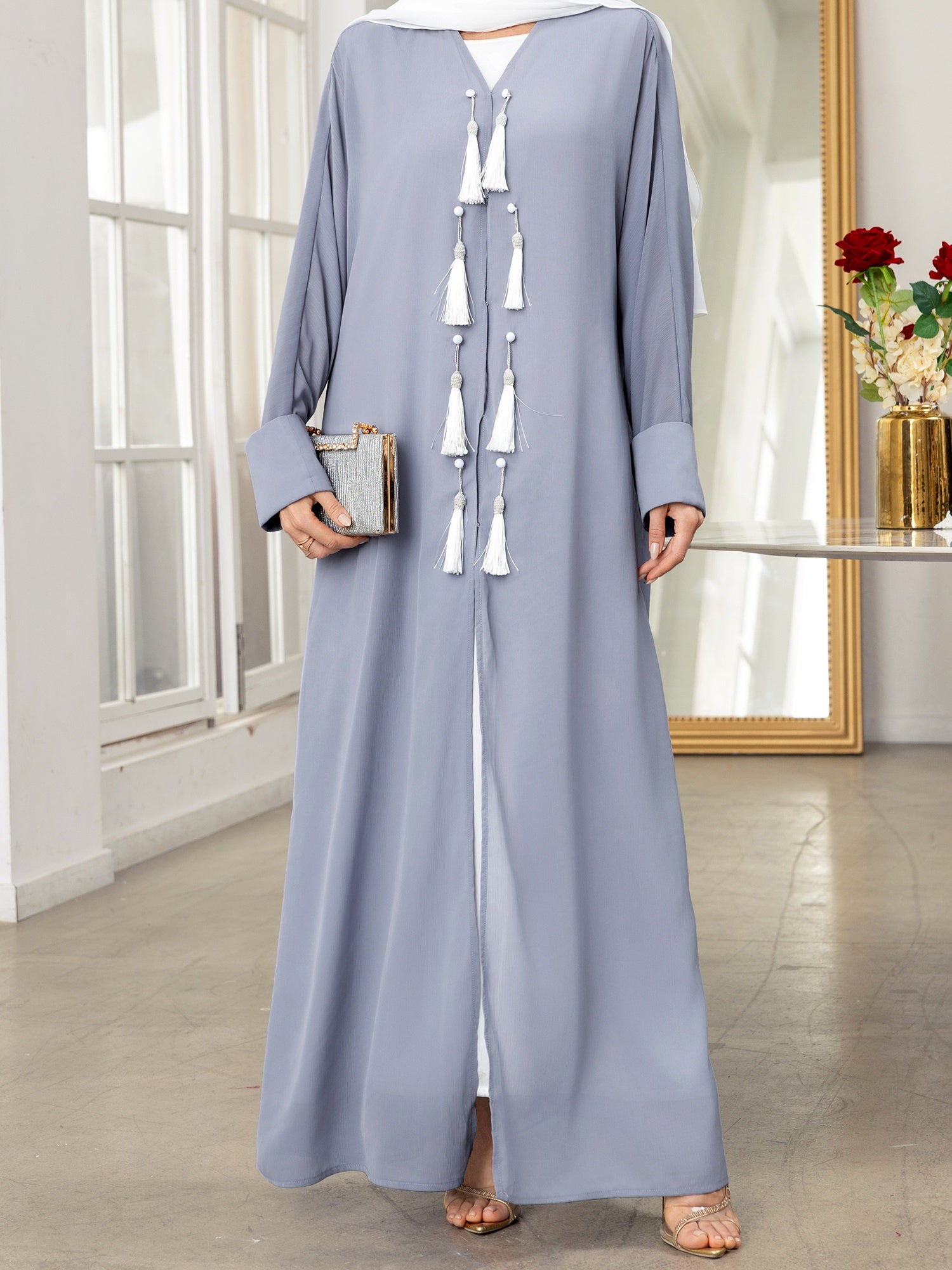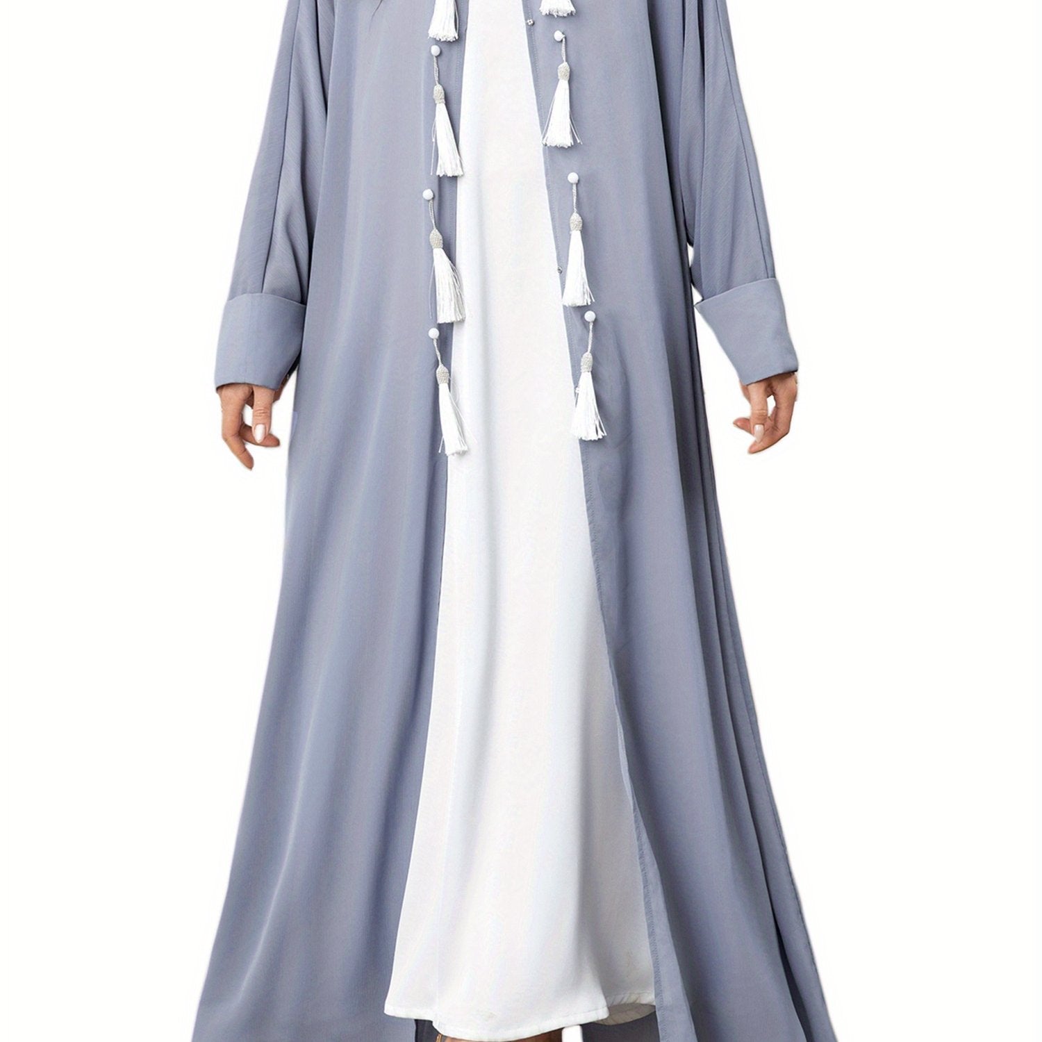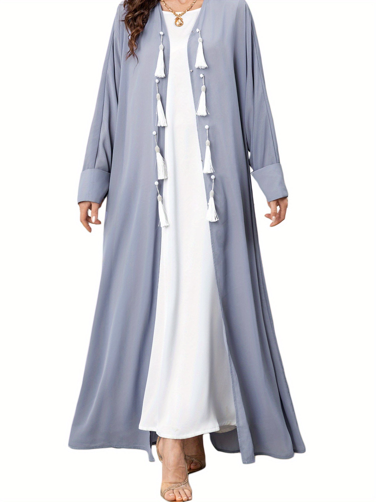 Women's Solid Color Long Sleeve Arabic Abaya - Loose Tassel Arab Robe, Casual Style, All-Season Wear, Light Blue, Perfect for Spring/Summer, Casual Wear Cardigan|Tassel Embellished Robe
