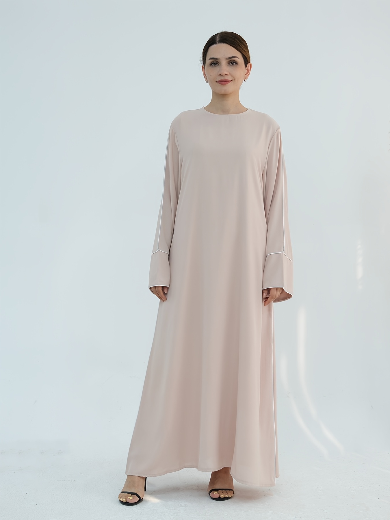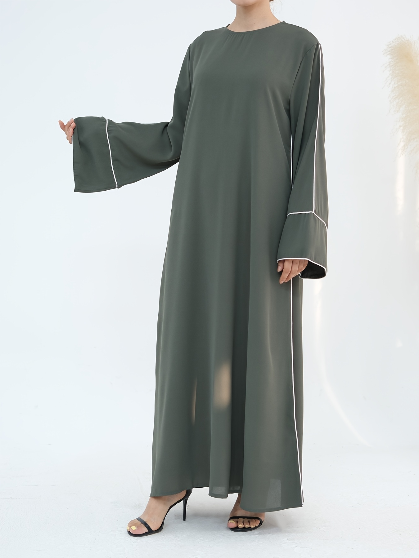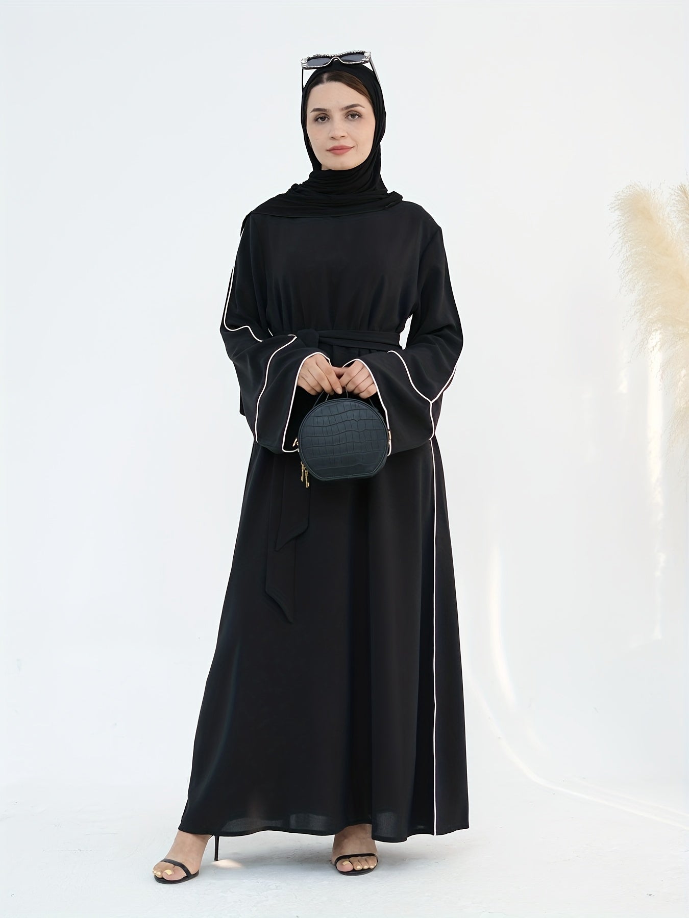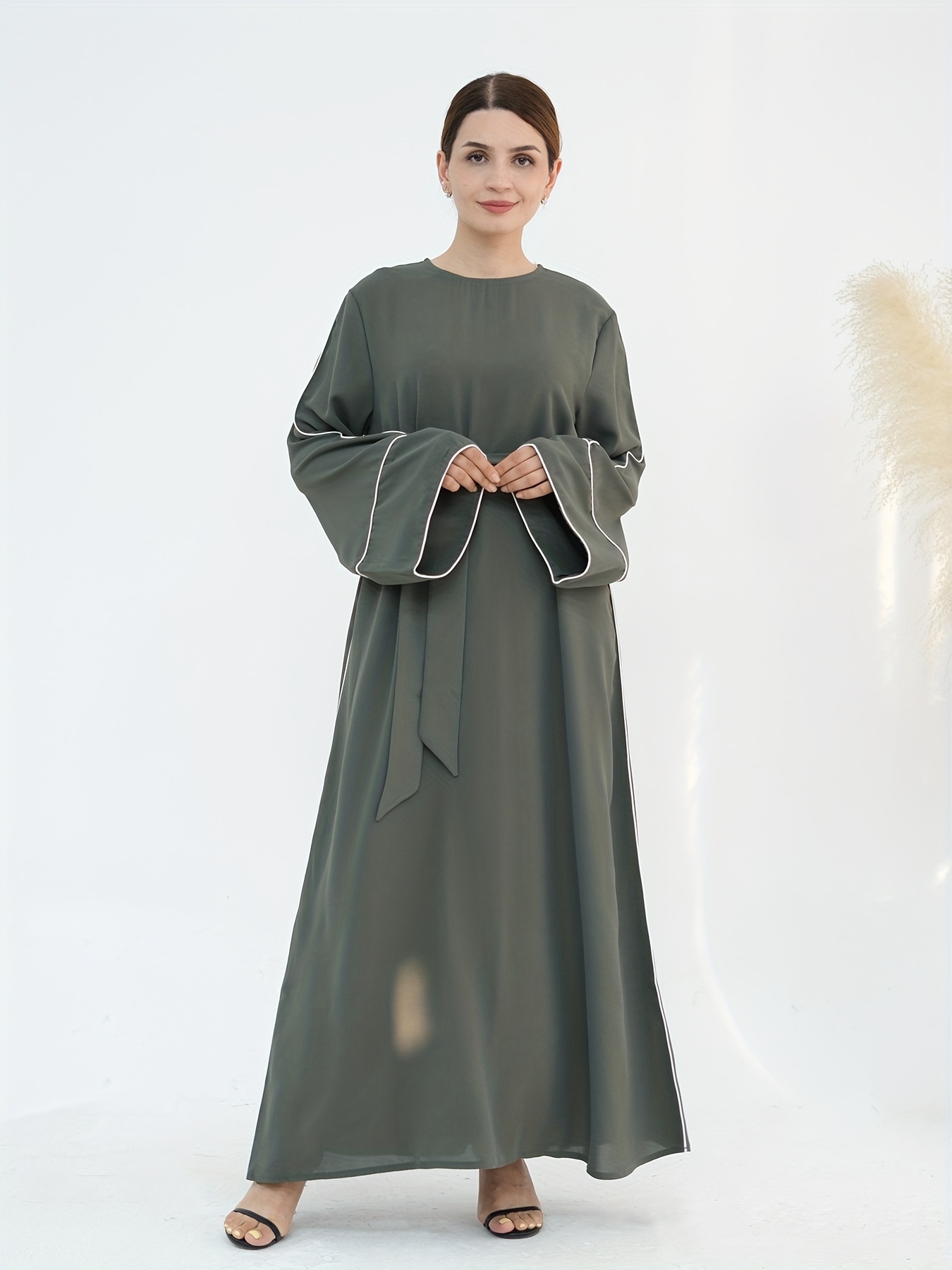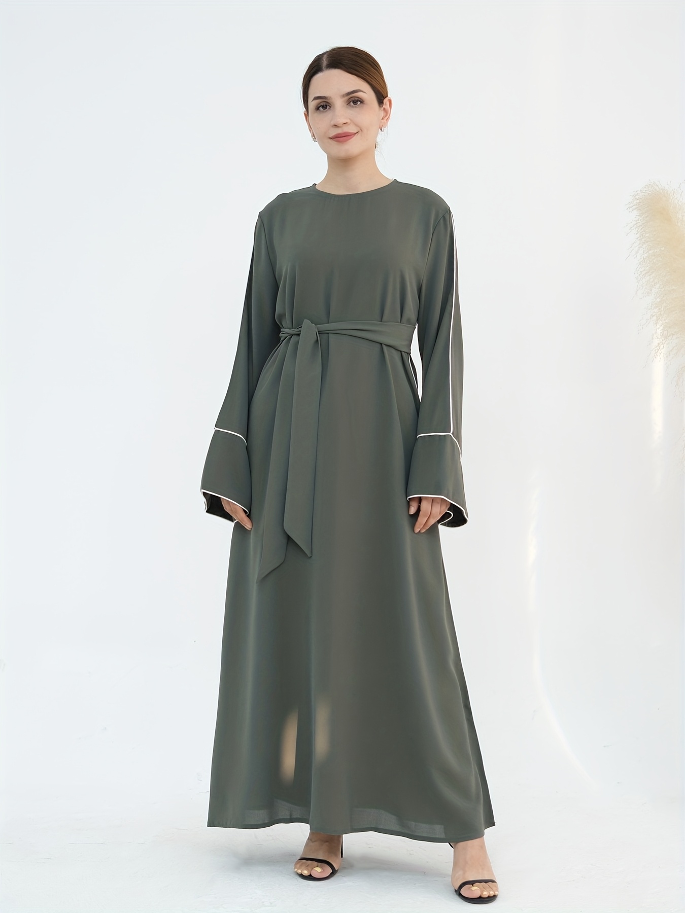 Women's Stylish Solid Color Dubai Turkish Abaya with Lace-Up Waist - Long Robe with Belt, Sleeveless, Polyester, All-Season Wear, Casual Attire|Elegant Attire|Polyester Fabric